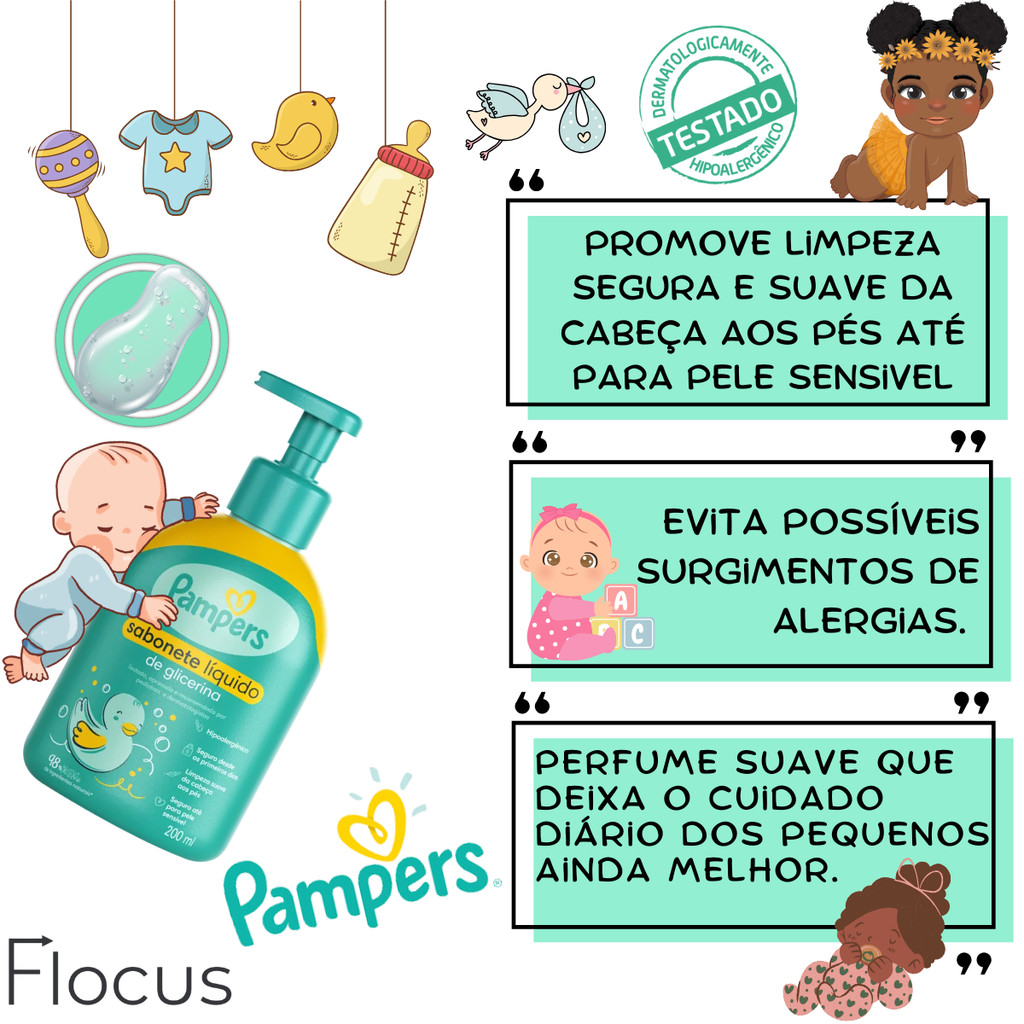 Kit Pampers Shampoo Condi Glicerina Lenço Umedecidos Toalhas Glicerina Lenços Aloe Vera Hipoalergêni