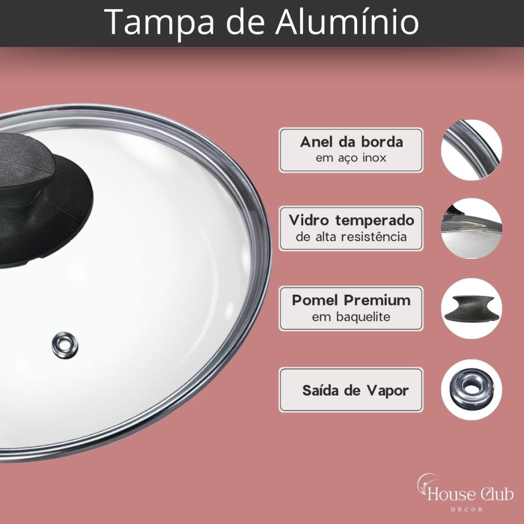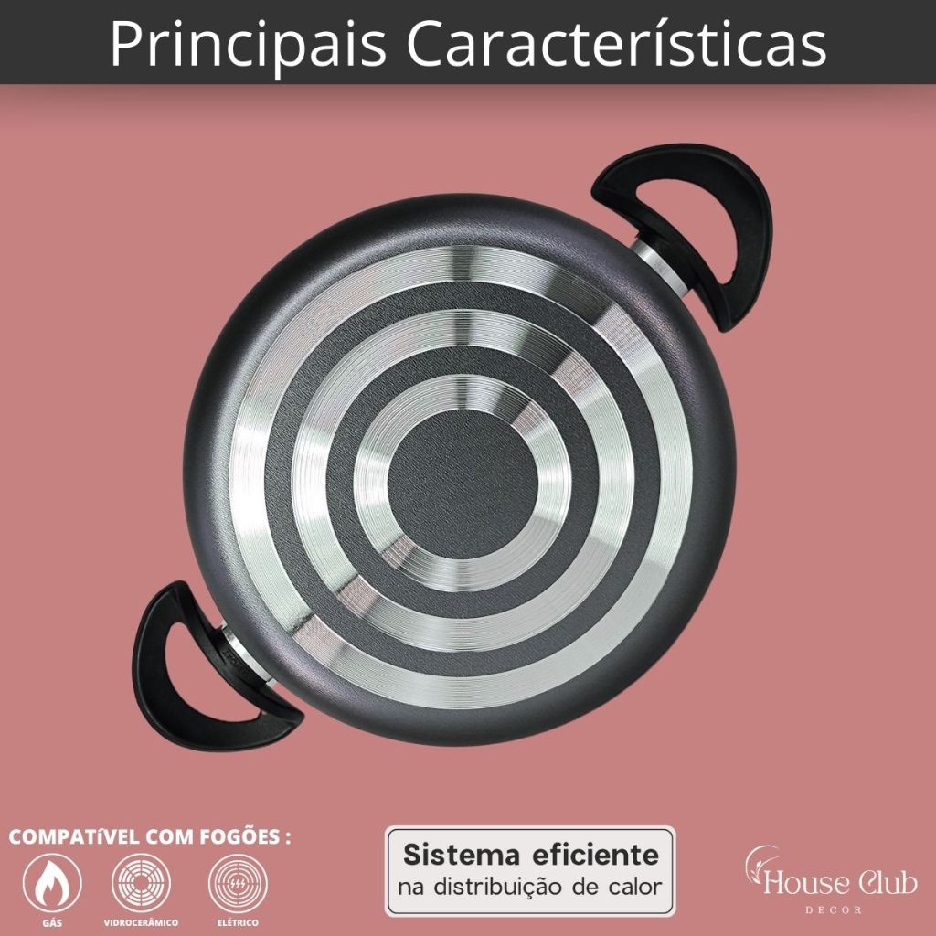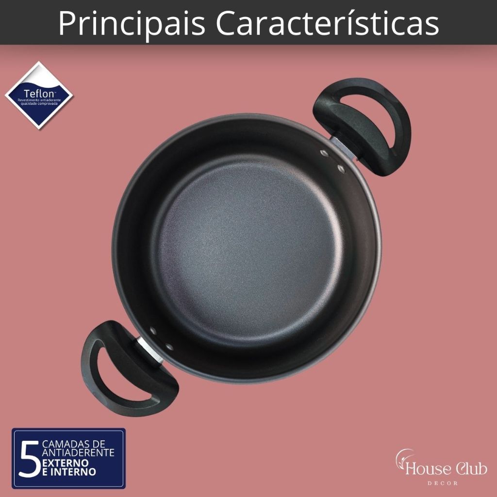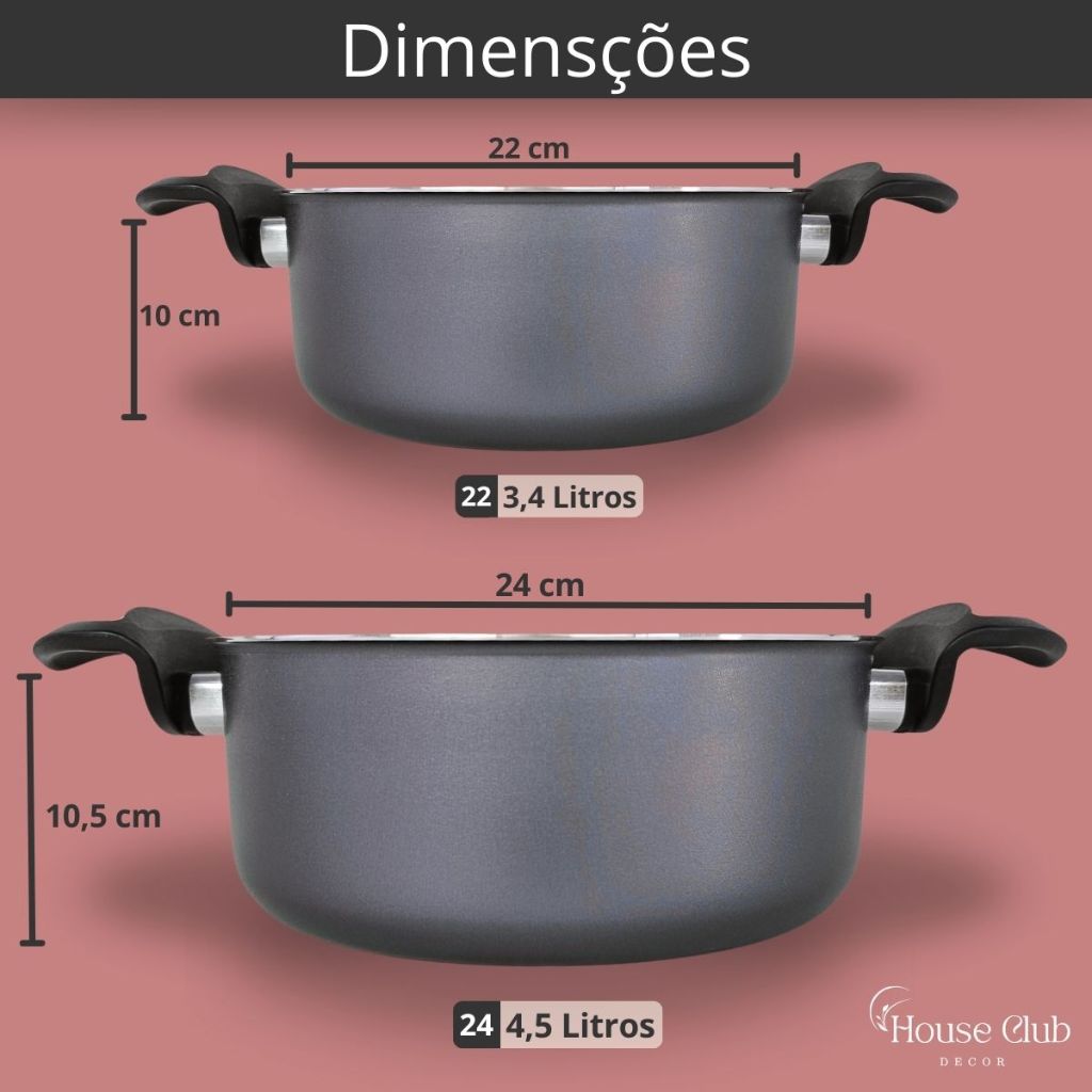 Kit Panelas Caçarolas Plus 02 Peças TAMANHO GRANDE 22 e 24 Antiaderente Com 5 Camadas de Teflon Cor Grafite Preto