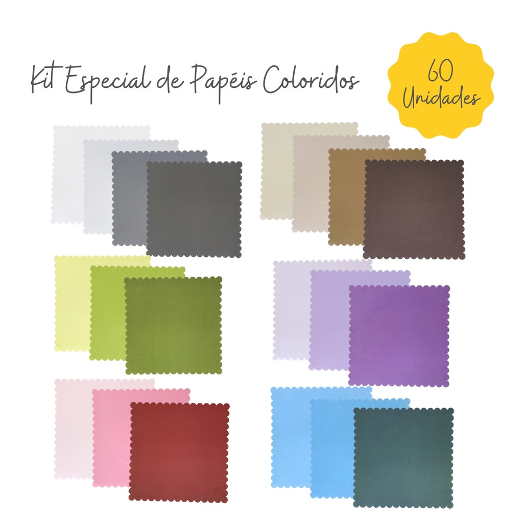 Kit Papel para Scrapbook 60 Folhas 20 Cores Sortidas
