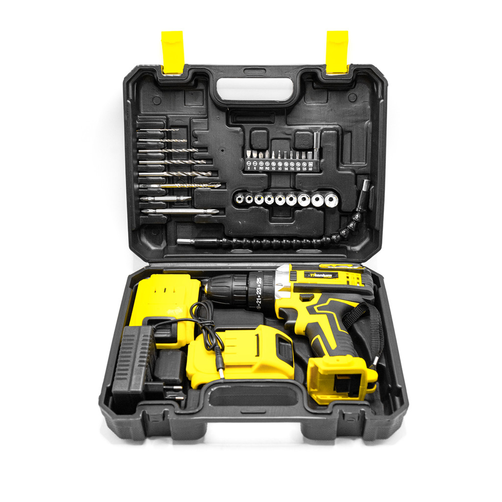 Kit Parafusadeira Carbon Bateria 21V Bivolt + Jogo Brocas 110 PÇS – Titanium Platina