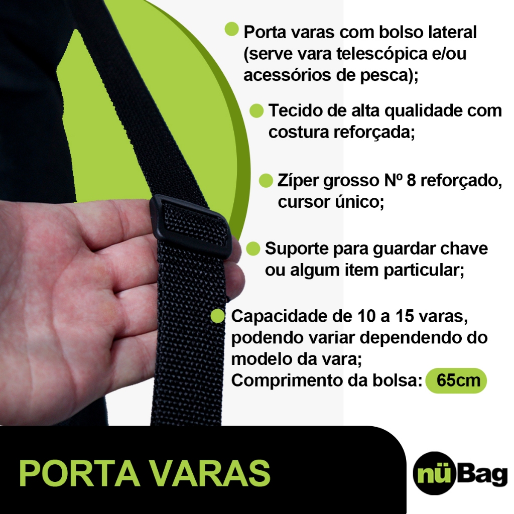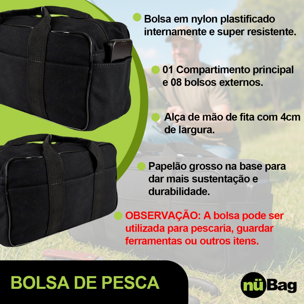 Kit Pescador Bolsa de Pesca + Capa Porta Varas 100cm Tubular com Alça e Bolso + Porta Anzol Iscas
