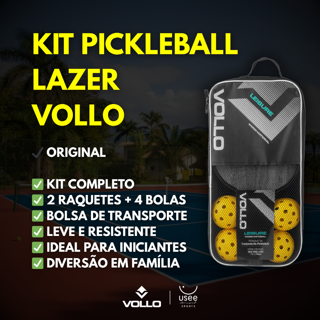 Kit Pickleball Lazer 2 Raquetes 4 Bolas e Bolsa Vollo Original