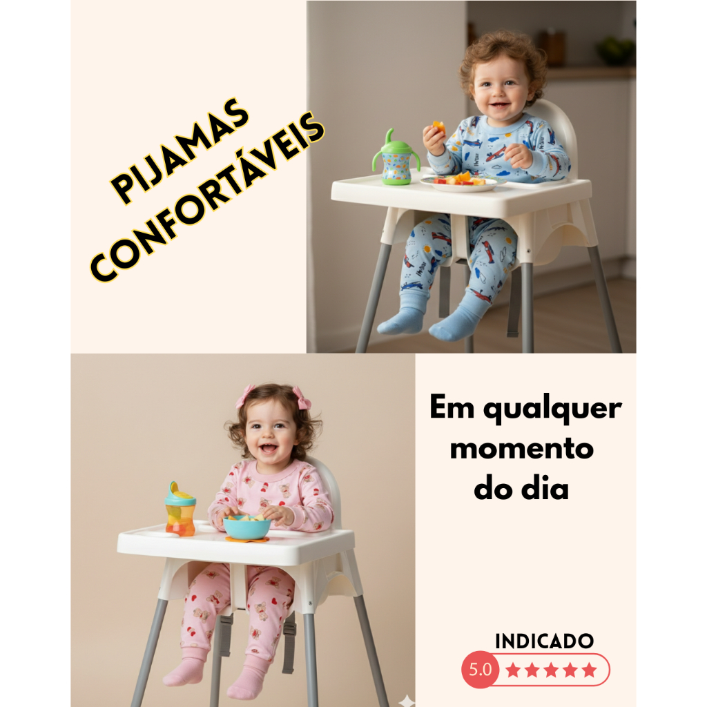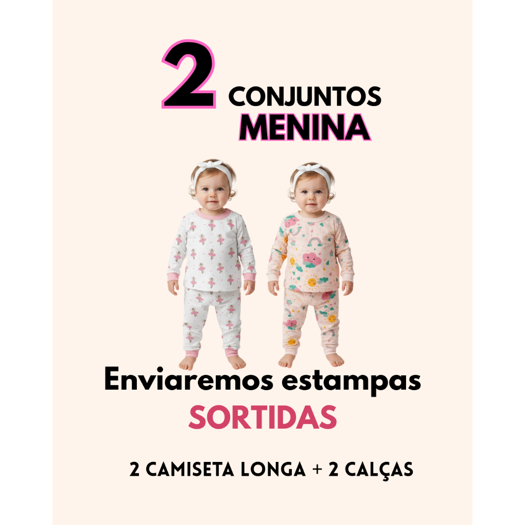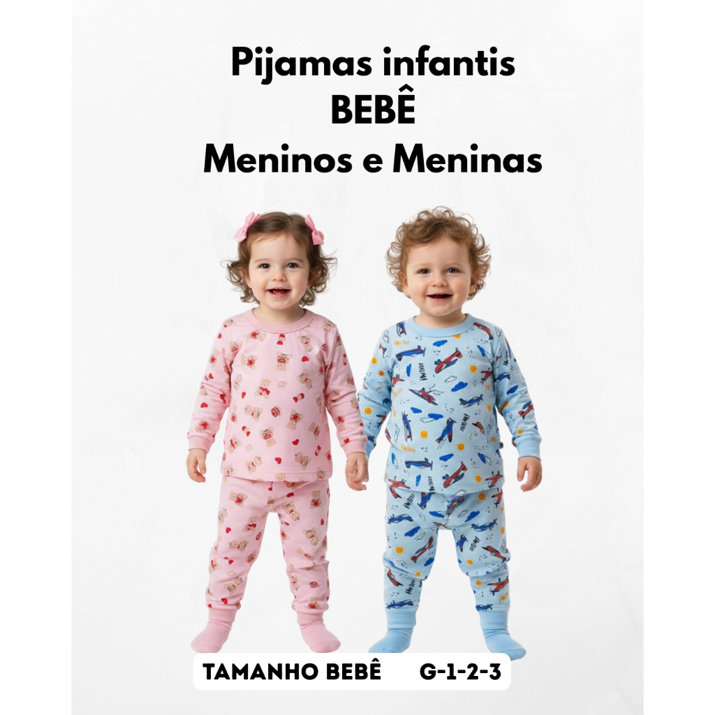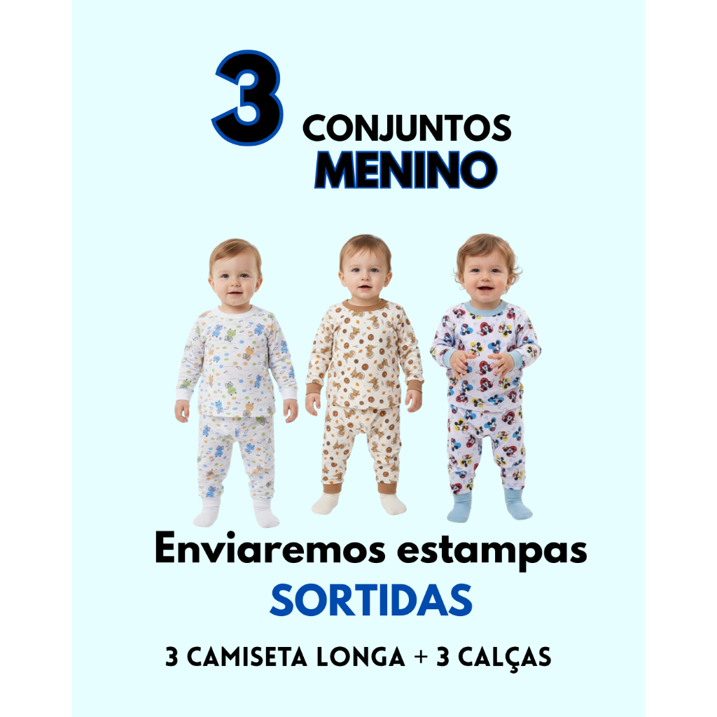 Kit Pijama Bebê Manga Longa Menino Menina 100% Algodão Estampado