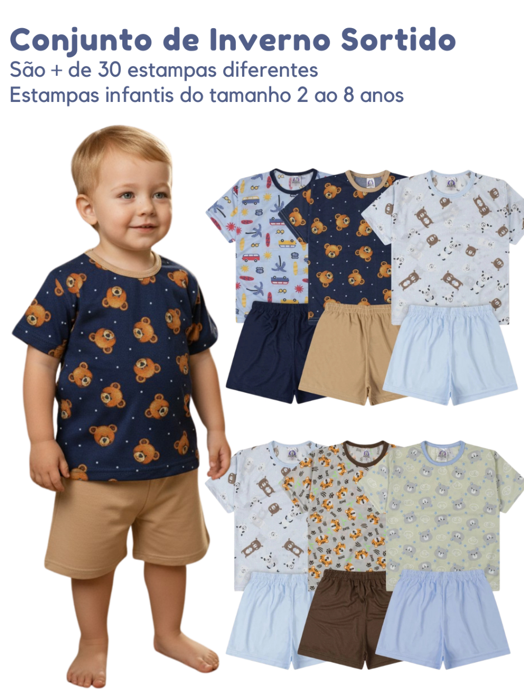 Kit Pijama Bebe Menino | Pijama Bebê Tam 2 ao 16 anos | Pijama Bebe Verão Sortido