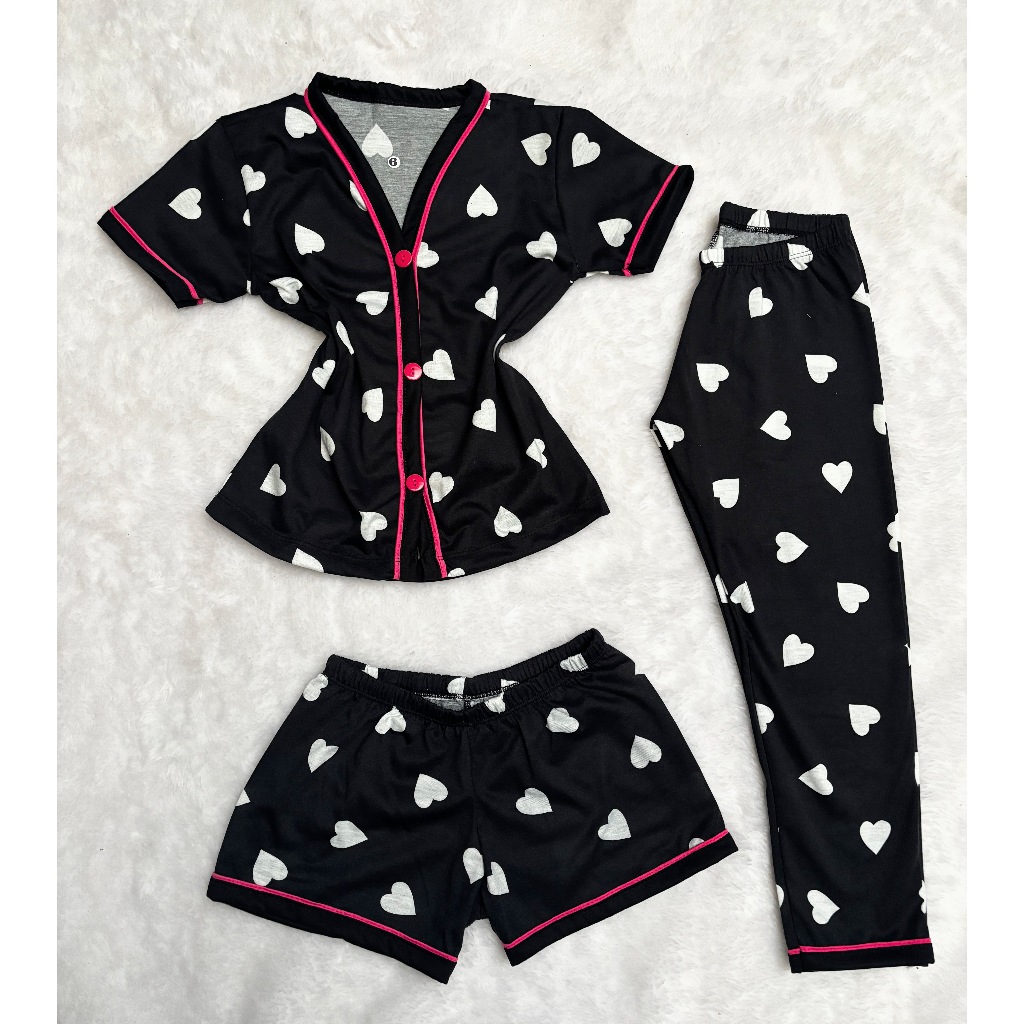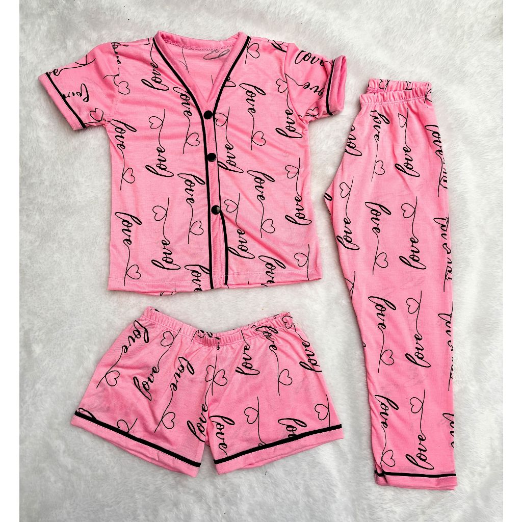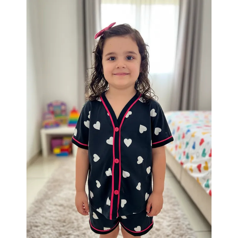 Kit Pijama Infantil Menina 3 Peças Americano Camisa Botões + Calça + Short Conforto Malha 2 ao10