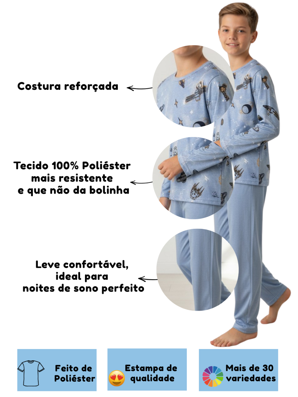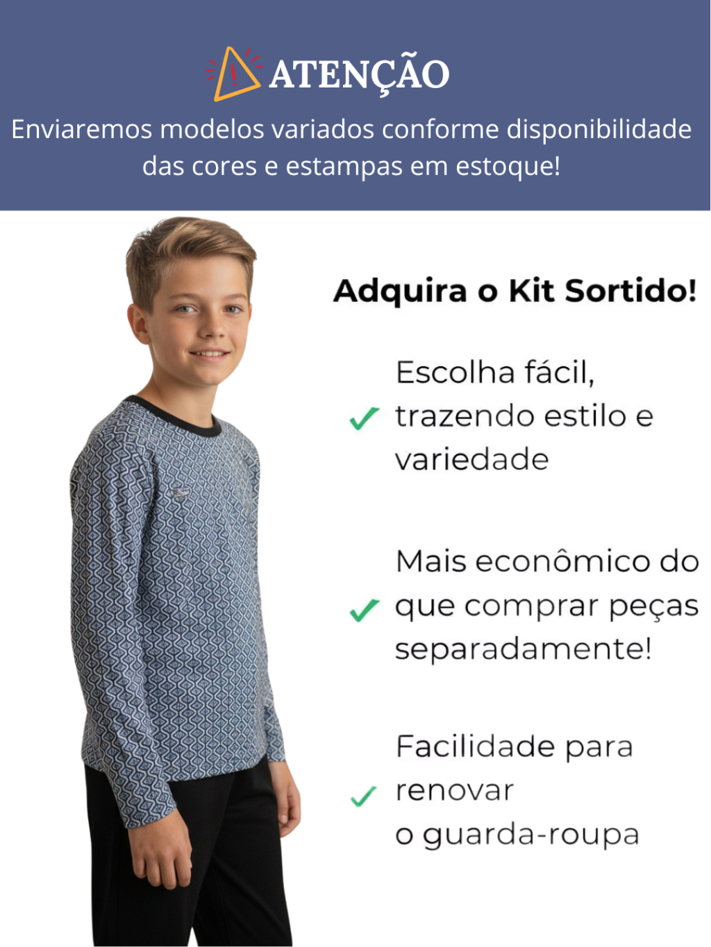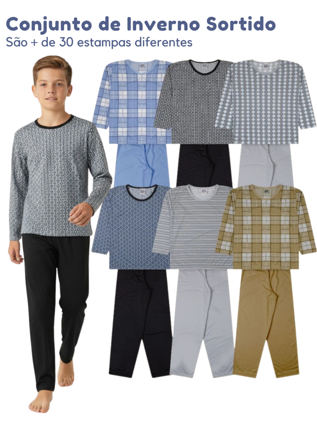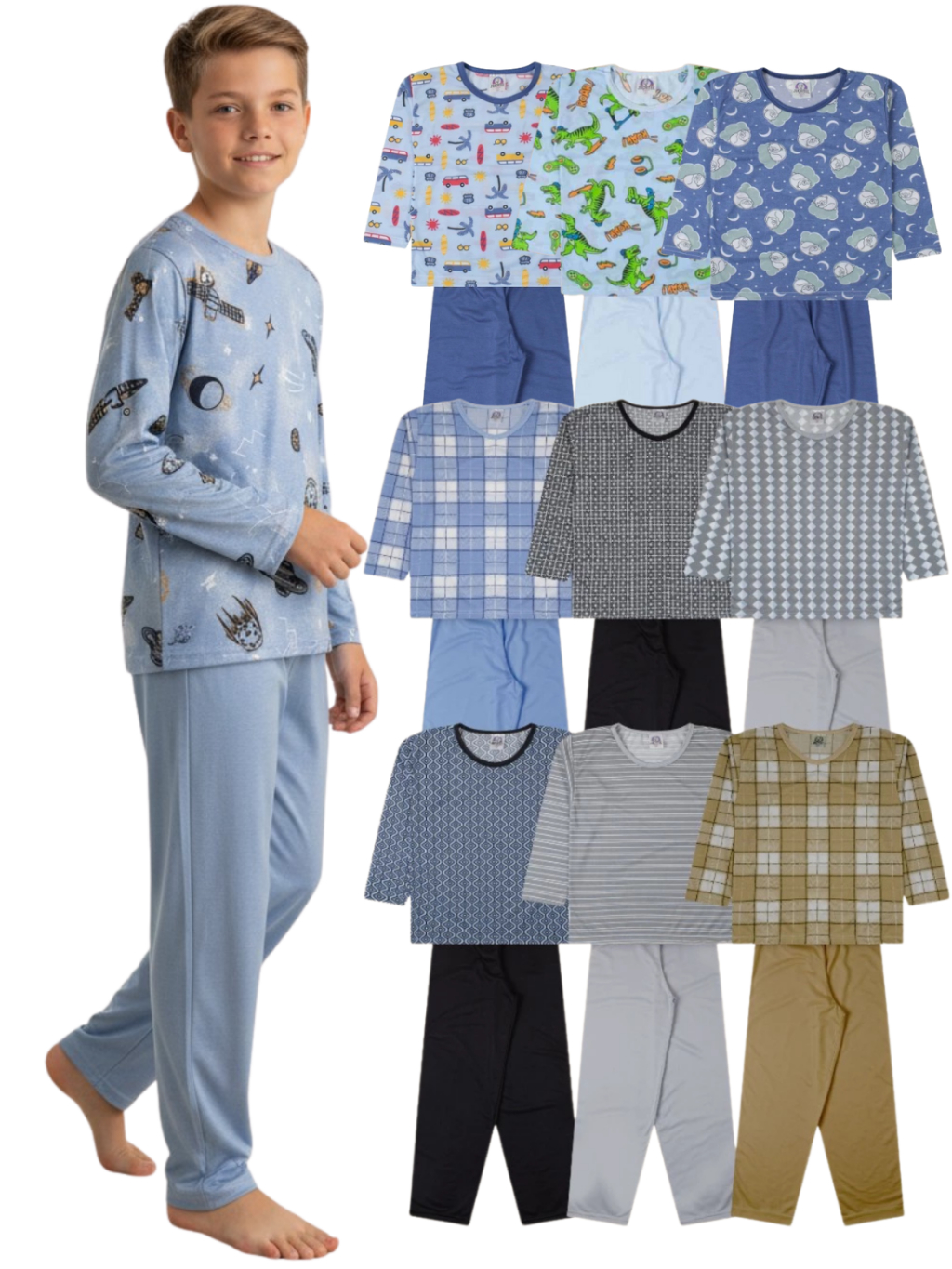 Kit Pijama Infanto Juvenil Menino | Pijama Infantojuvenil Tamanho 2 ao 16 | Pijama Infanto Juvenil Inverno