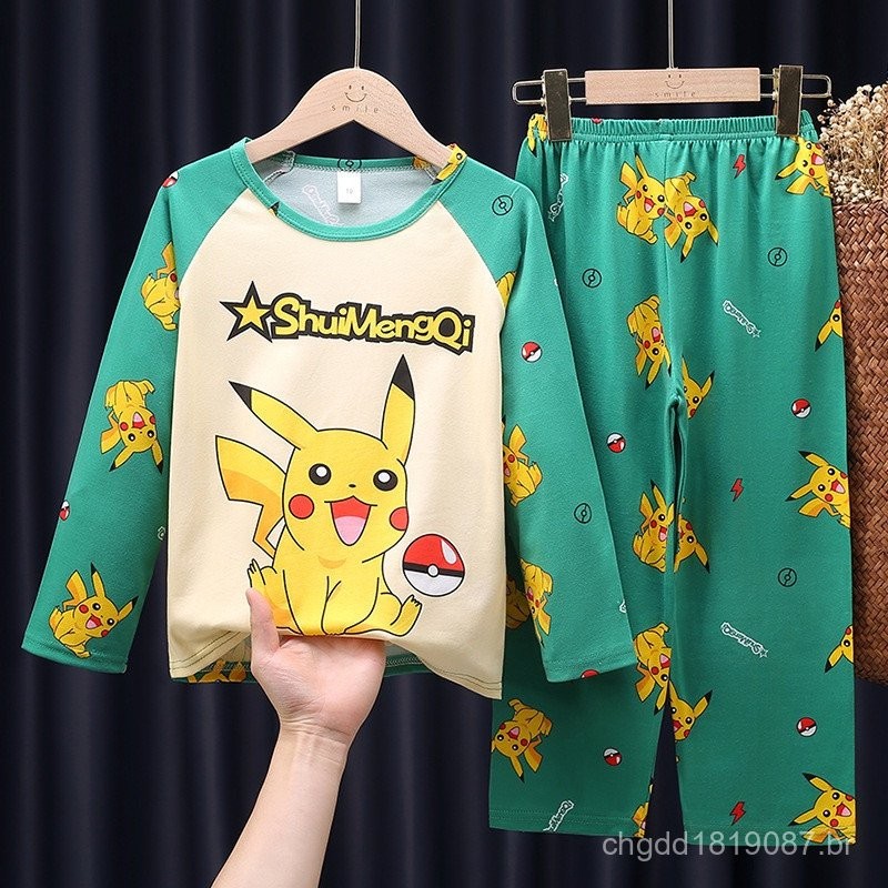 Kit Pijama Pikachu Pokemon Infantil Menino Menina Animado Fino Anime Conjunto De Roupas Confortáveis O Lar