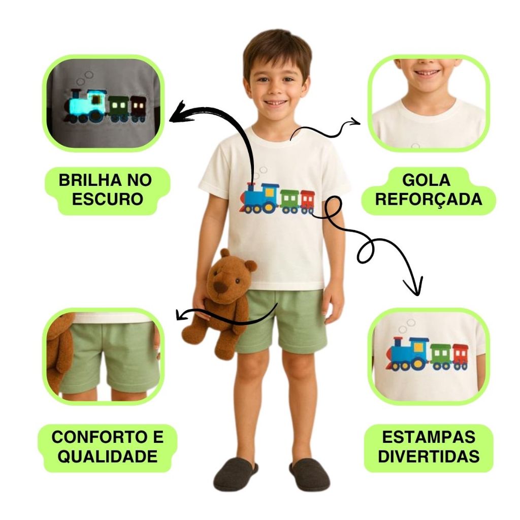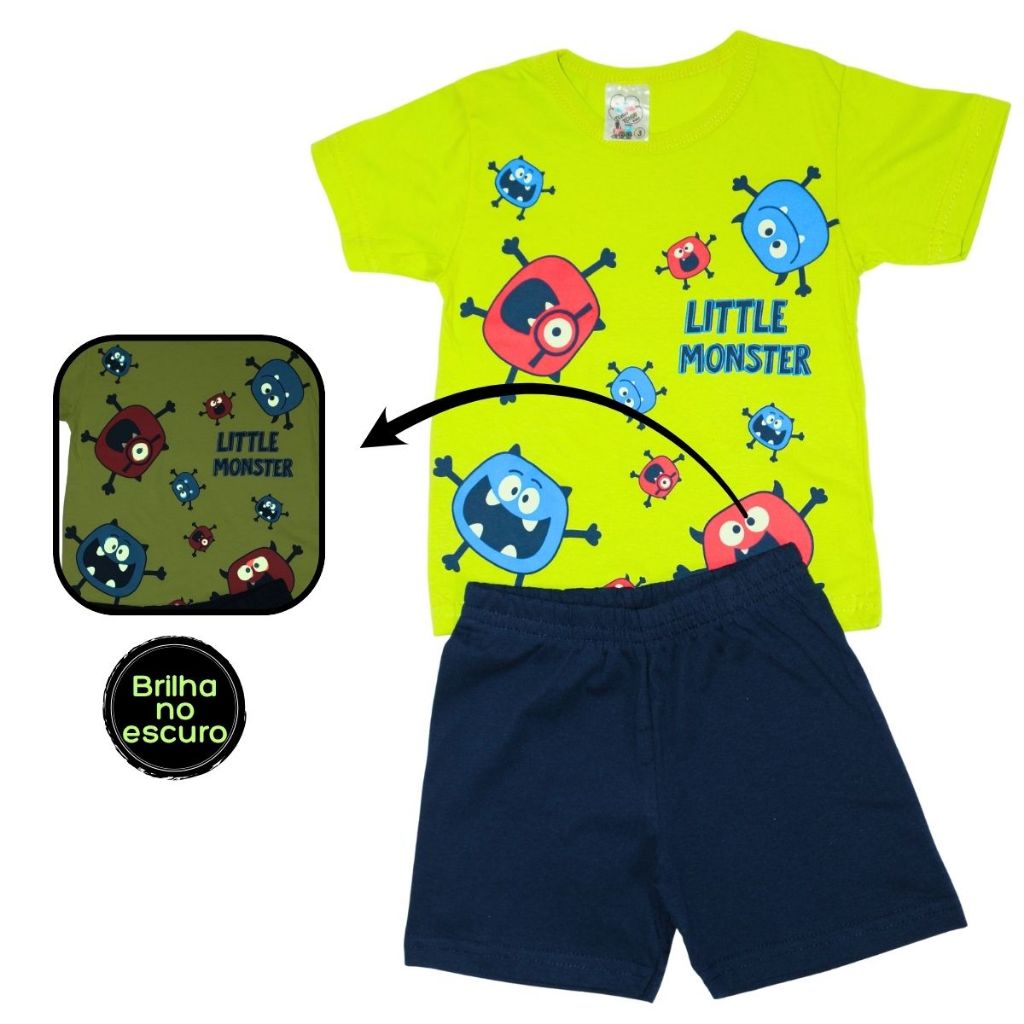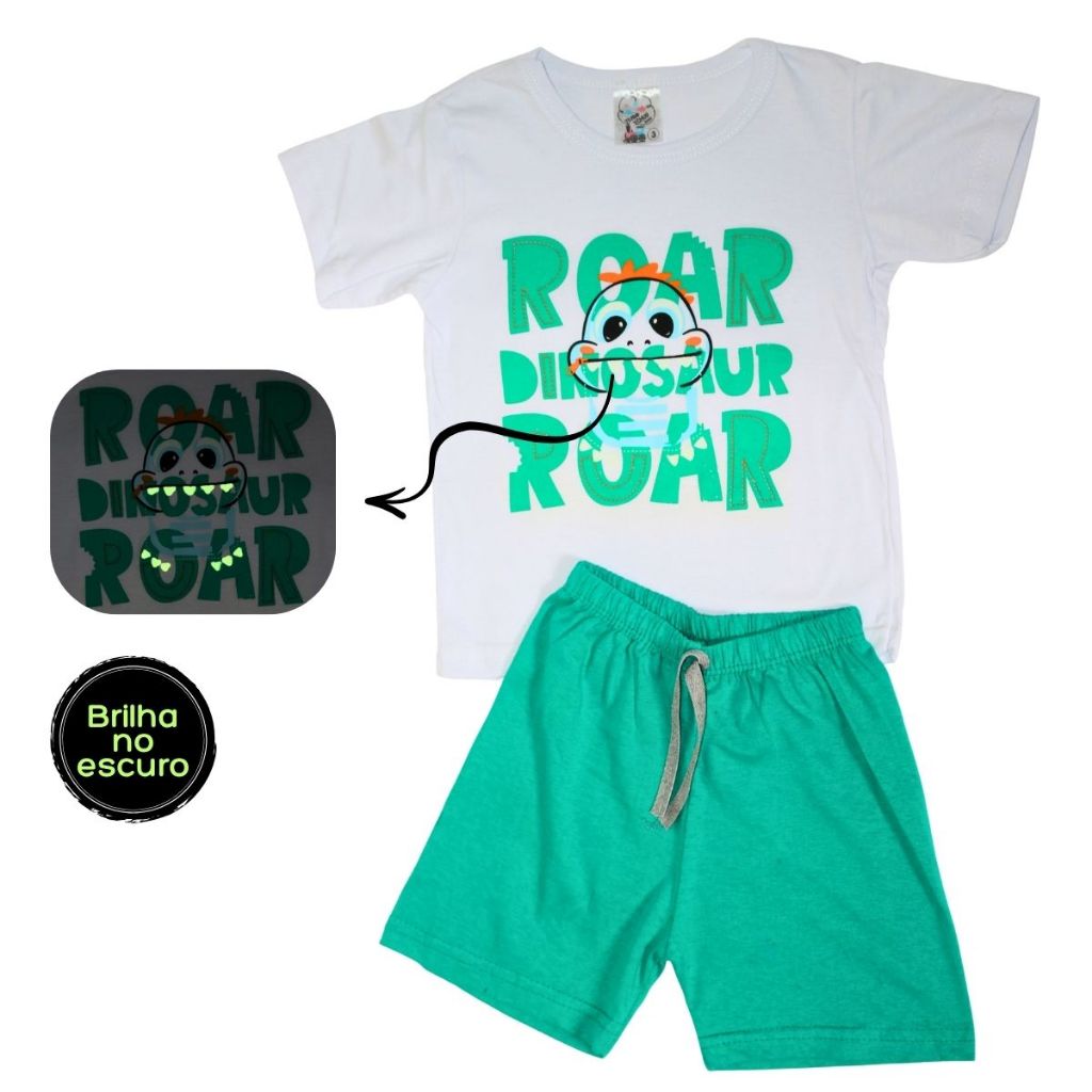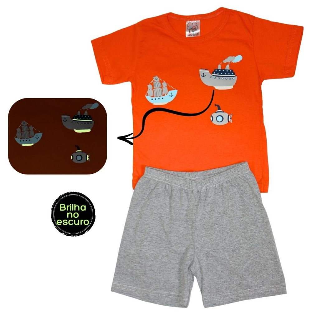 Kit Pijamas Infantis Masculinos de Verão – 10 Peças com Estampas que Brilham no Escuro!
