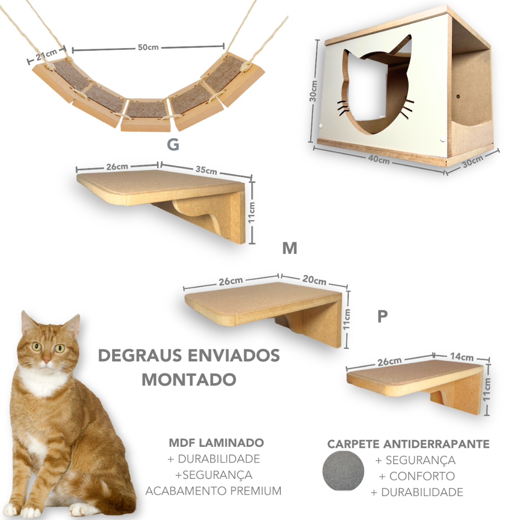Kit Playground 9pcs + Arranhador de Parede 80cm - CARA DE GATO Parque Gato Playground Parque Gato