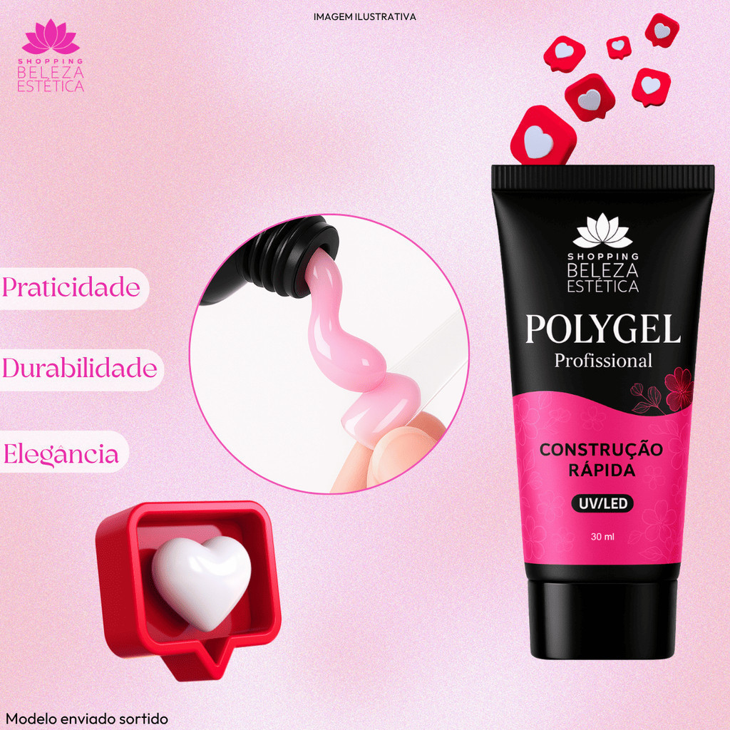 Kit Polygel Unhas Profissional – Molde F1 + Lixa + Mini Cabine UV/LED – Nail Designer Completo