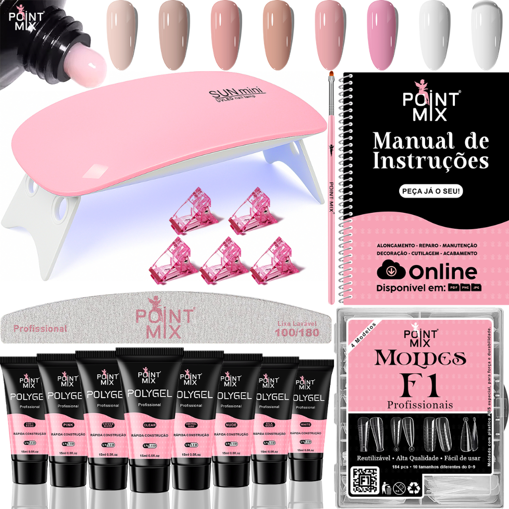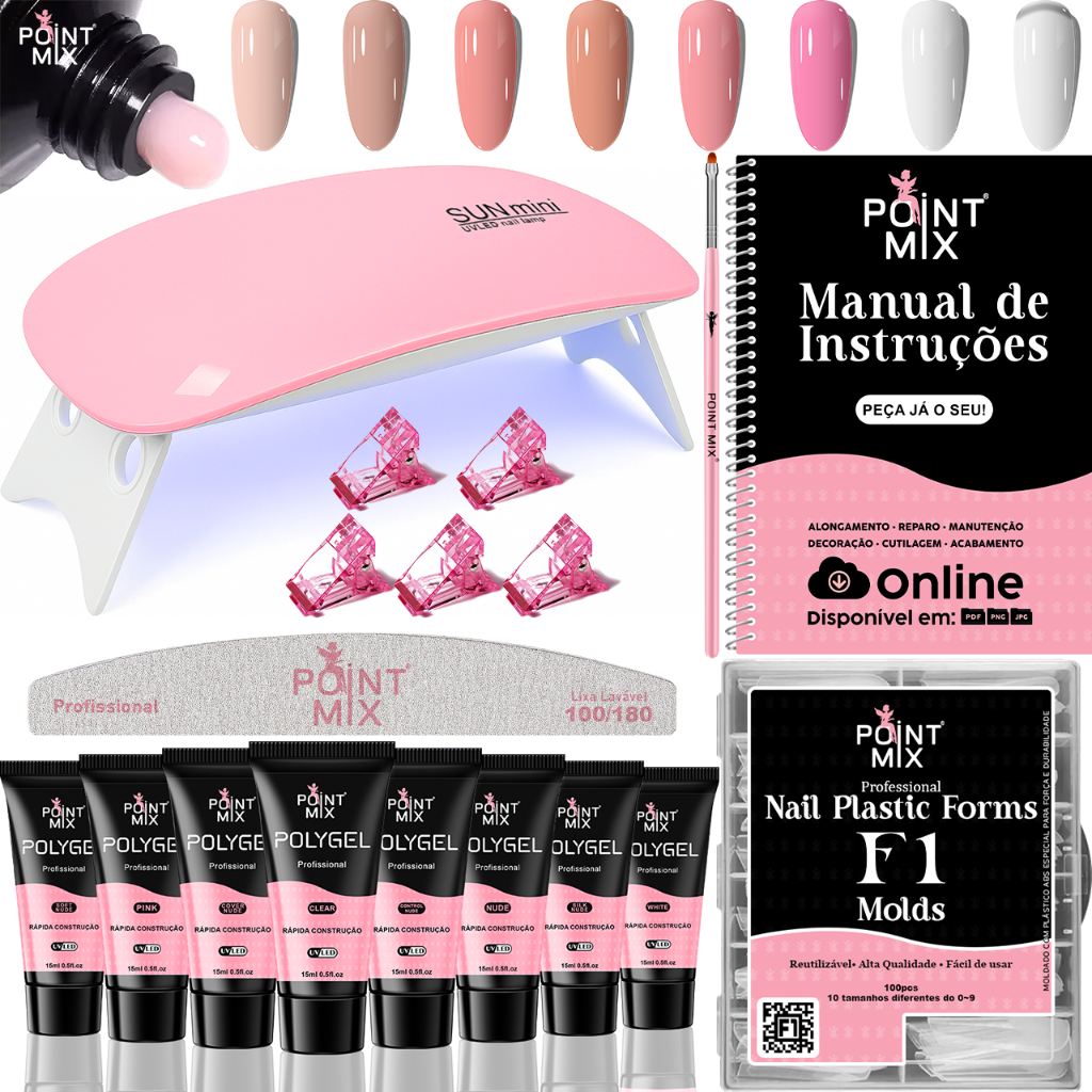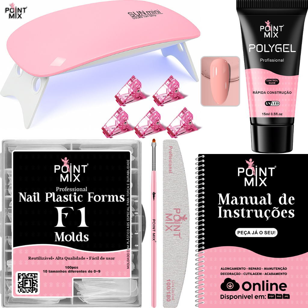 Kit Polygel para Alongamento de Unhas Iniciante Sun Mini Presilhas Acrílicas Moldes F1 Lixa Pincel