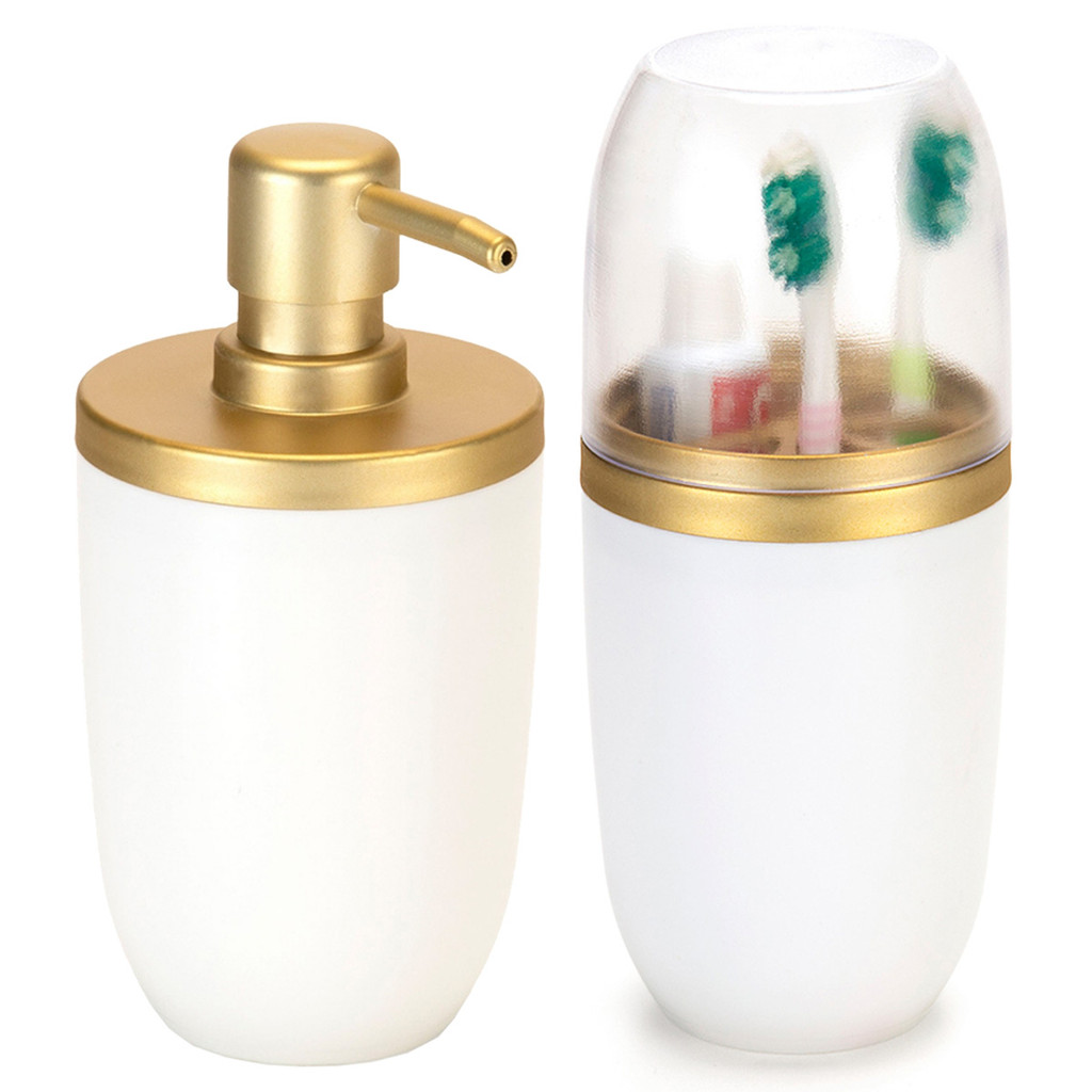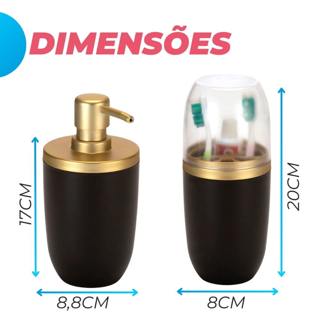 Kit Porta Escova Dispenser Porta Sabonete Saboneteira Líquido 500ml Premium Banheiro Lavabo Arthi