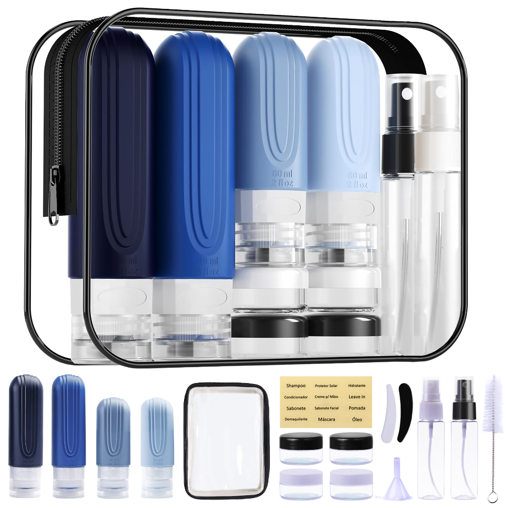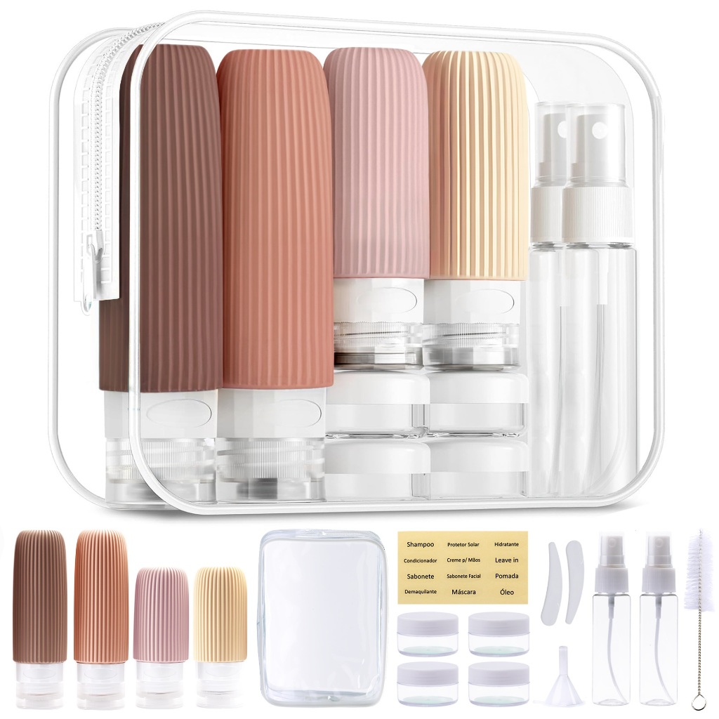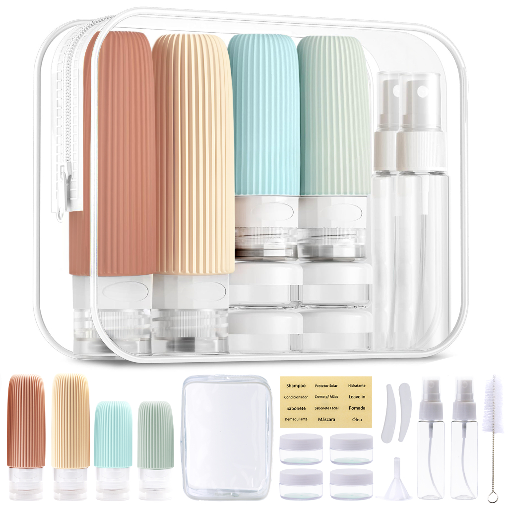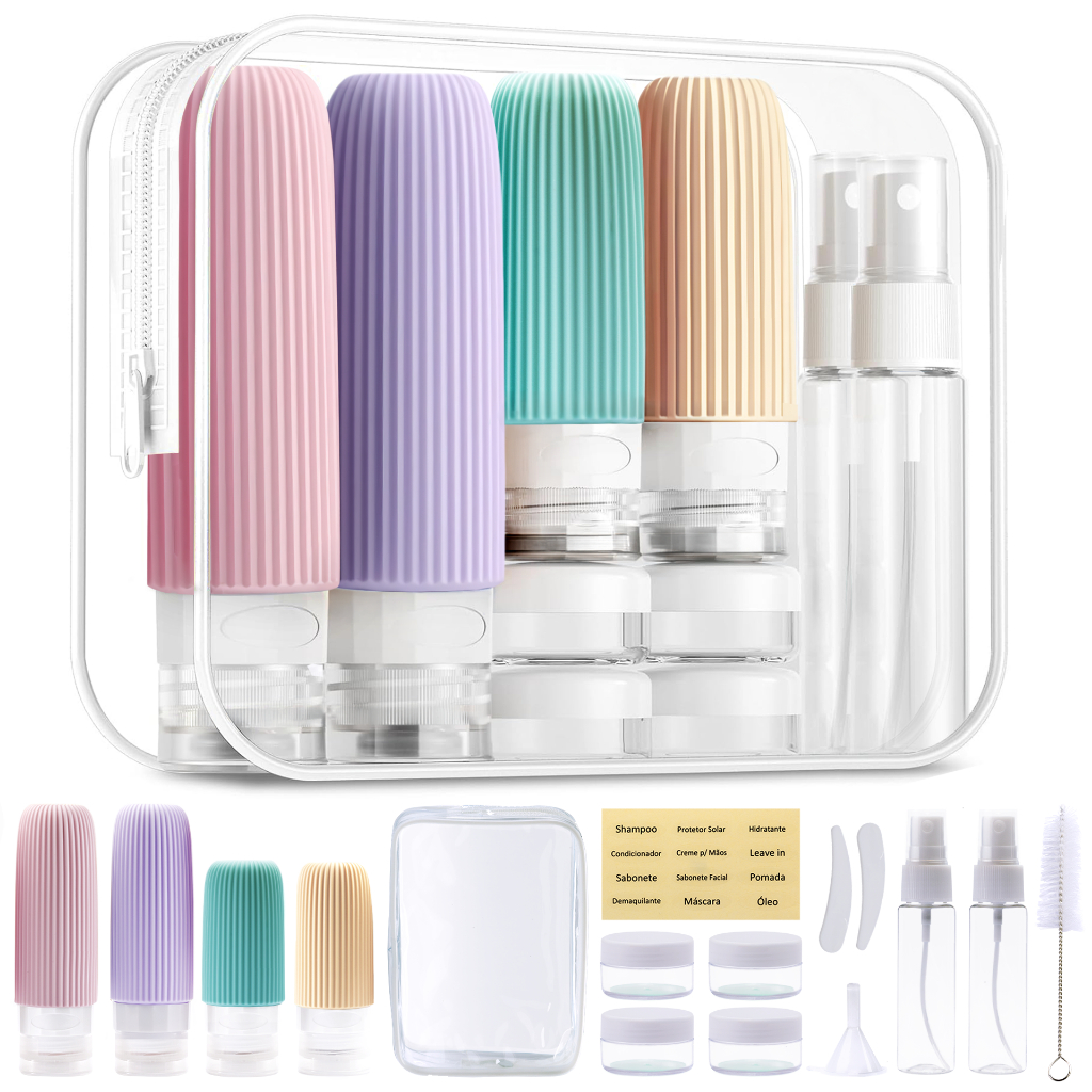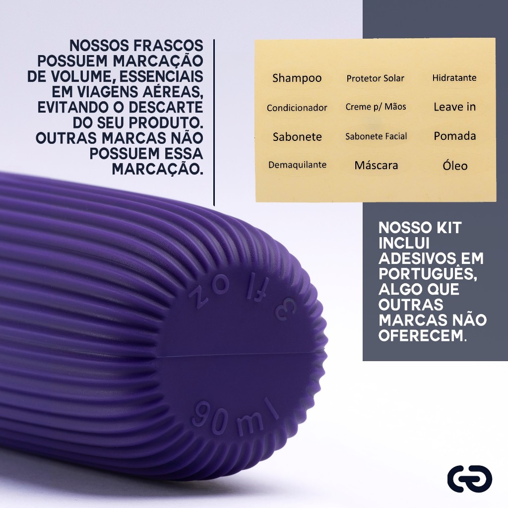 Kit Potes Frascos Silicone Viagem Creme Shampoo Condicionador Cosméticos 16 Peças