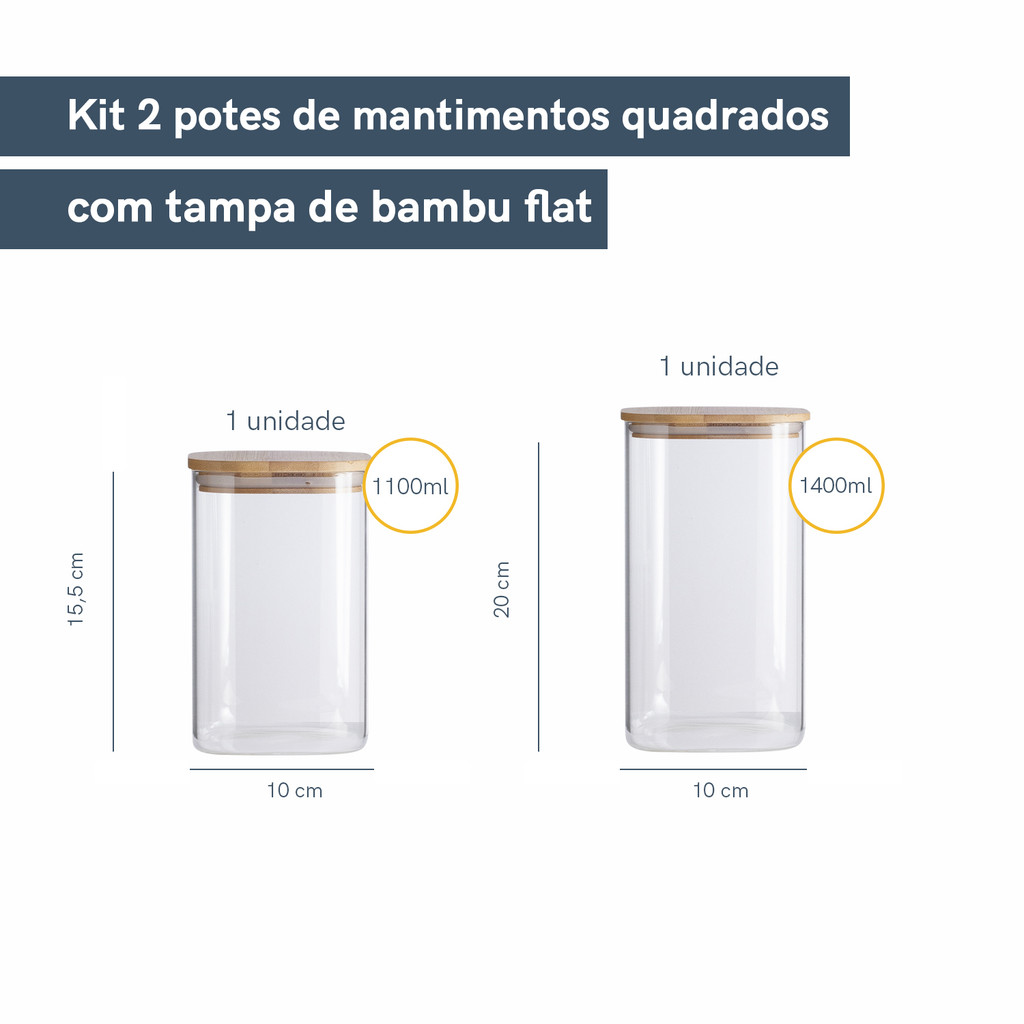 Kit Potes Hermeticos Vidro Quad Flat 1400/1100 - 2 pçs Oikos