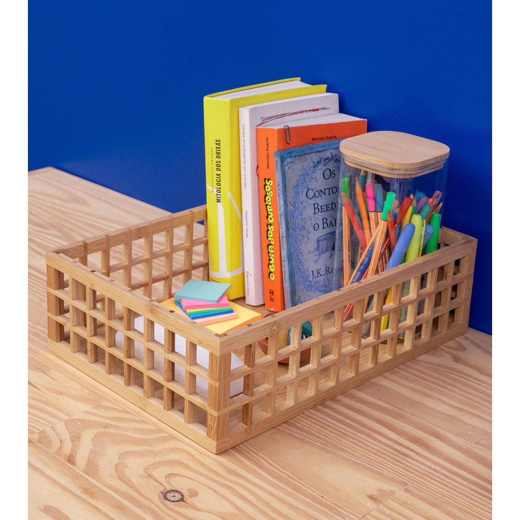 Kit Potes Hermeticos de Vidro Quad Flat Bambu 1400ml - 2 pçs Oikos
