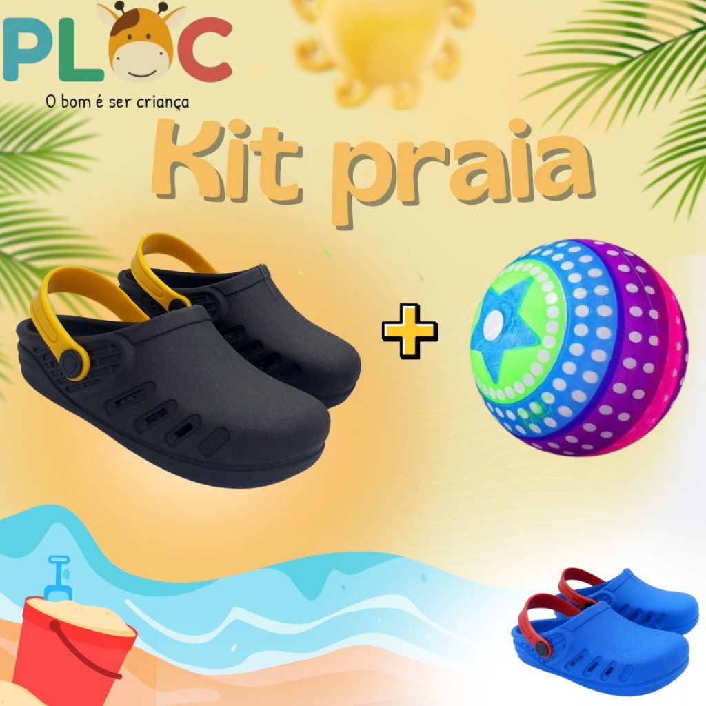 Kit Praia Ploc - Babuche PRETO e Bola de Vinil para atividade ao ar livre, praia ou presente menino