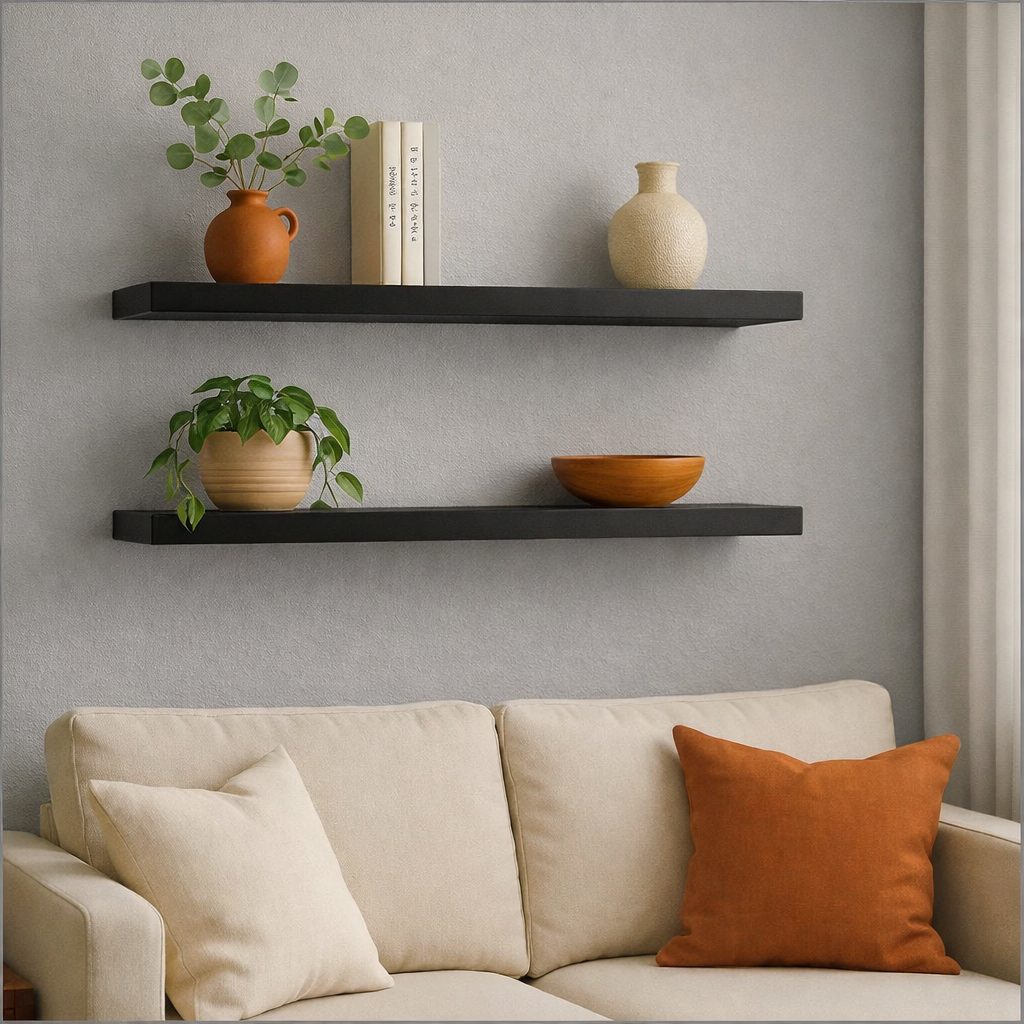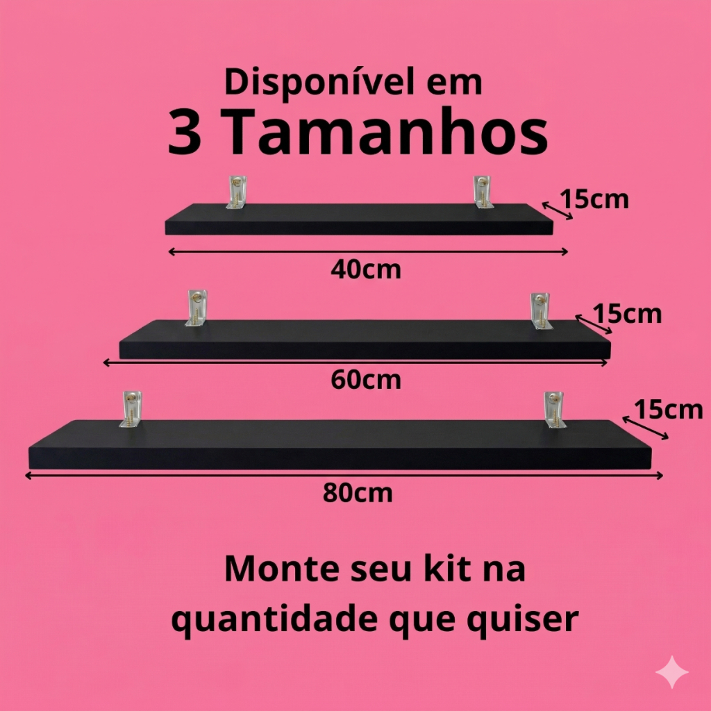 Kit Prateleiras Pretas MDF Preto Luxo Nicho Multiuso Sala Cozinha Quarto Banheiro Com Kit De Instalação