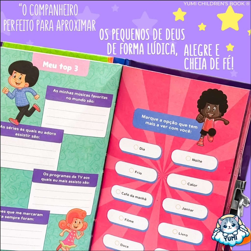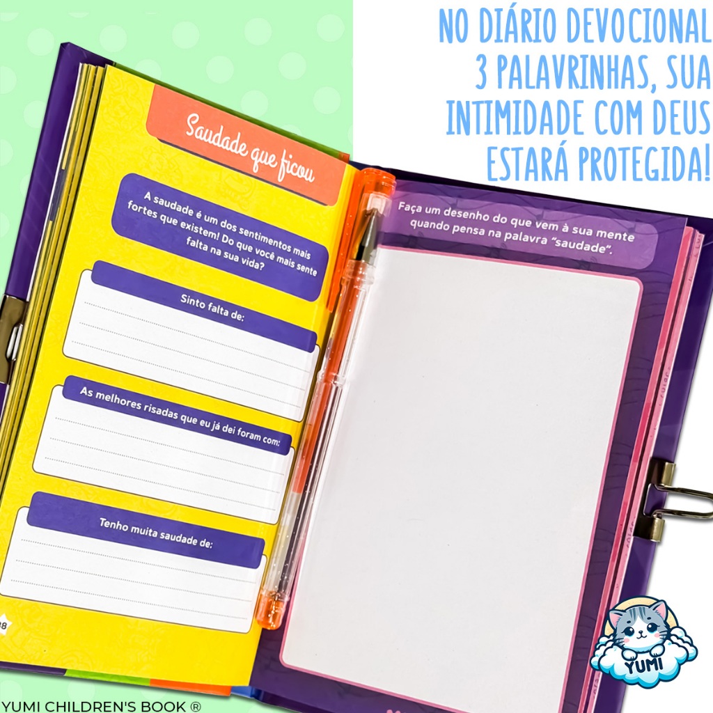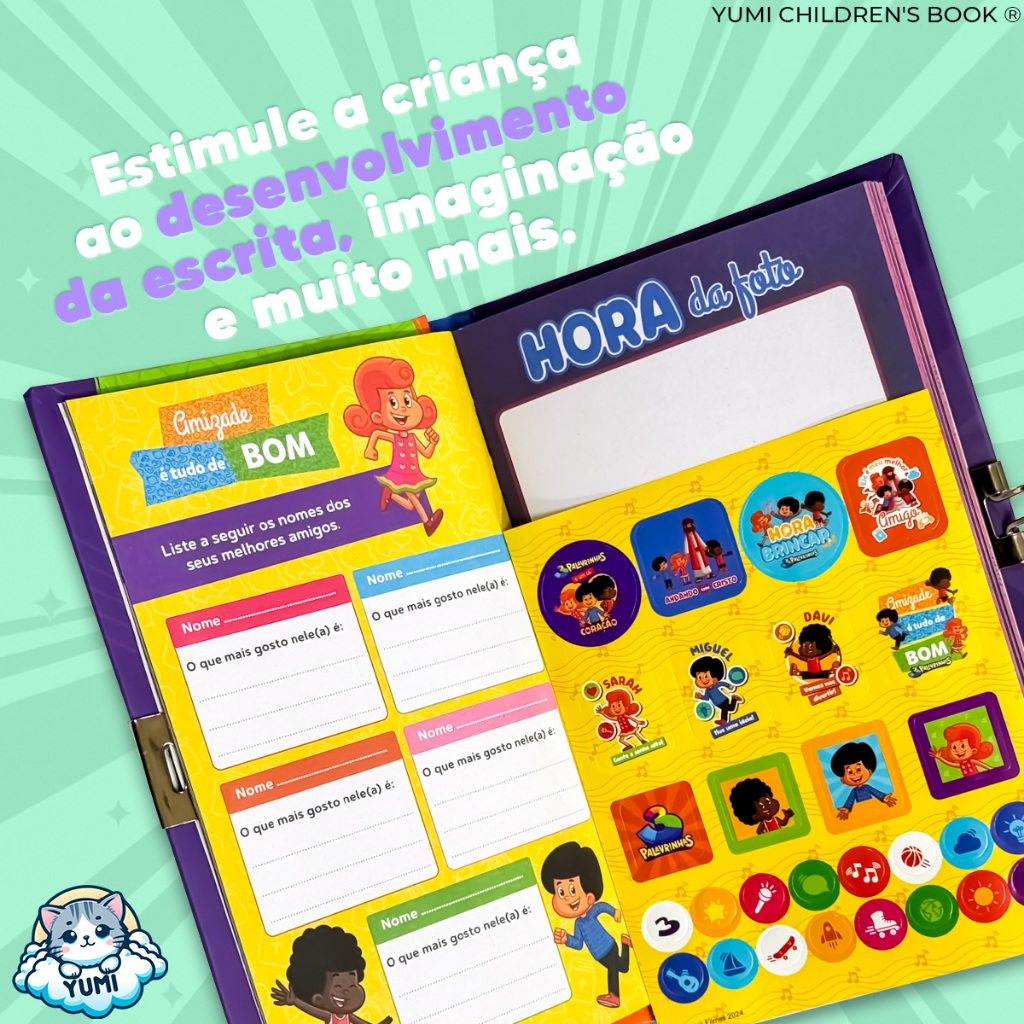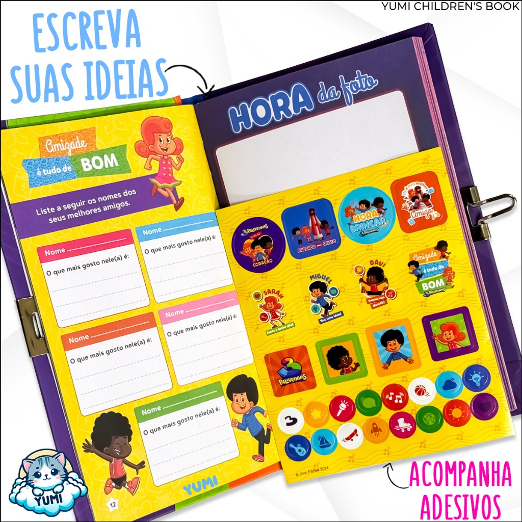 Kit Presente Criança 3 Palavrinhas - Diário Infantil + Caneta Colorida + Adesivos