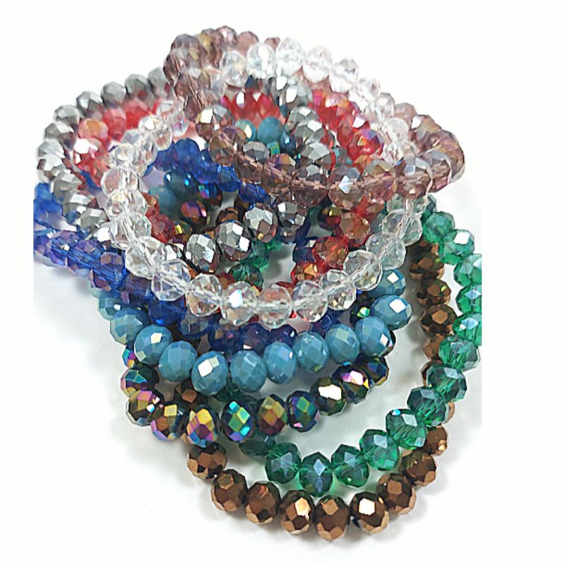 Pulseira de Cristal Larga 8 mm Bijuteria Kit 12 Unidades Cores Sortidas