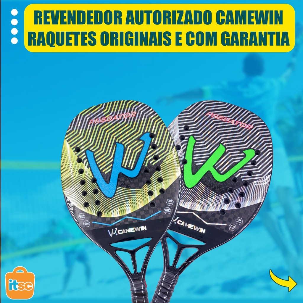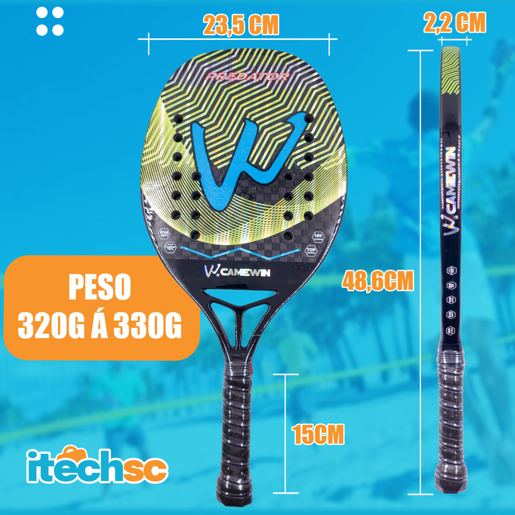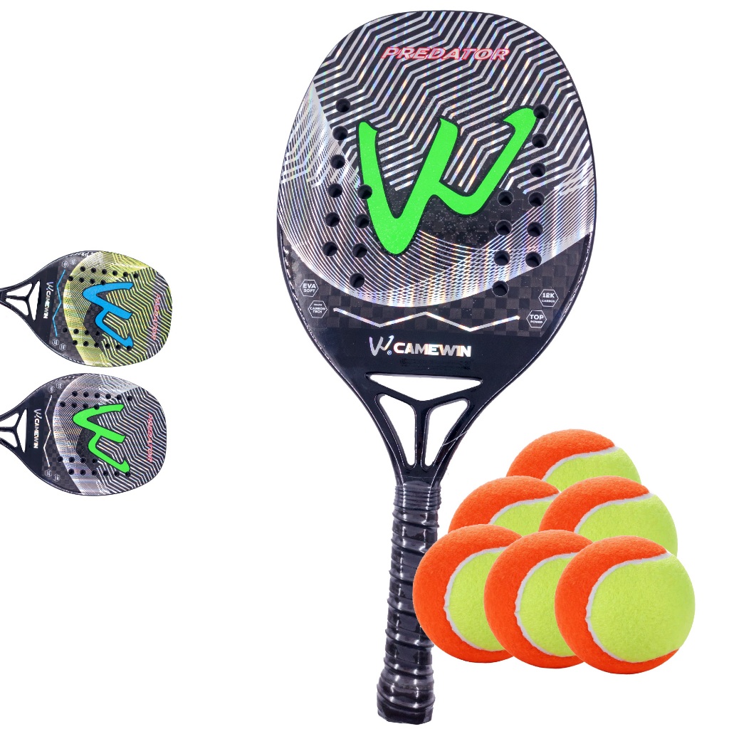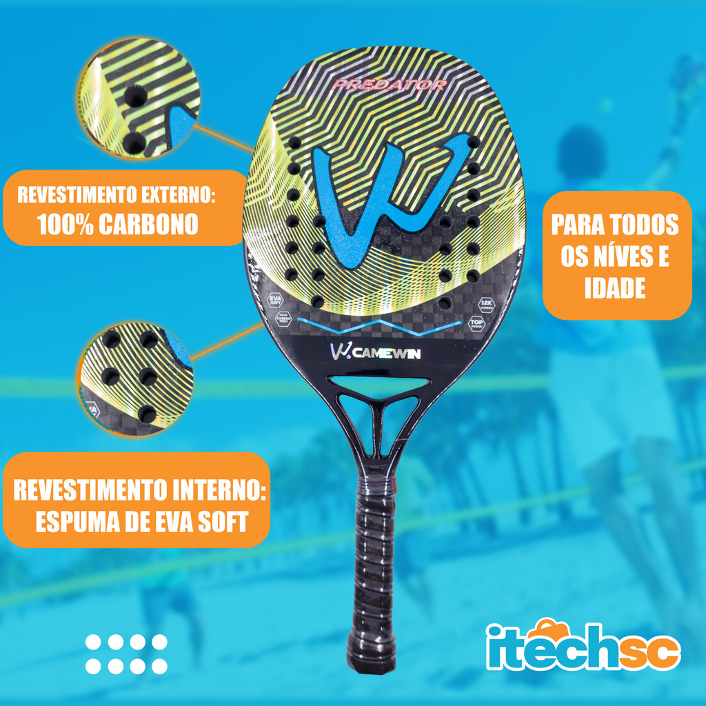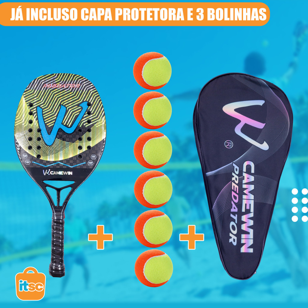 Kit Raquete Beach Tennis Carbono 12K Profissional + 06 Bolas