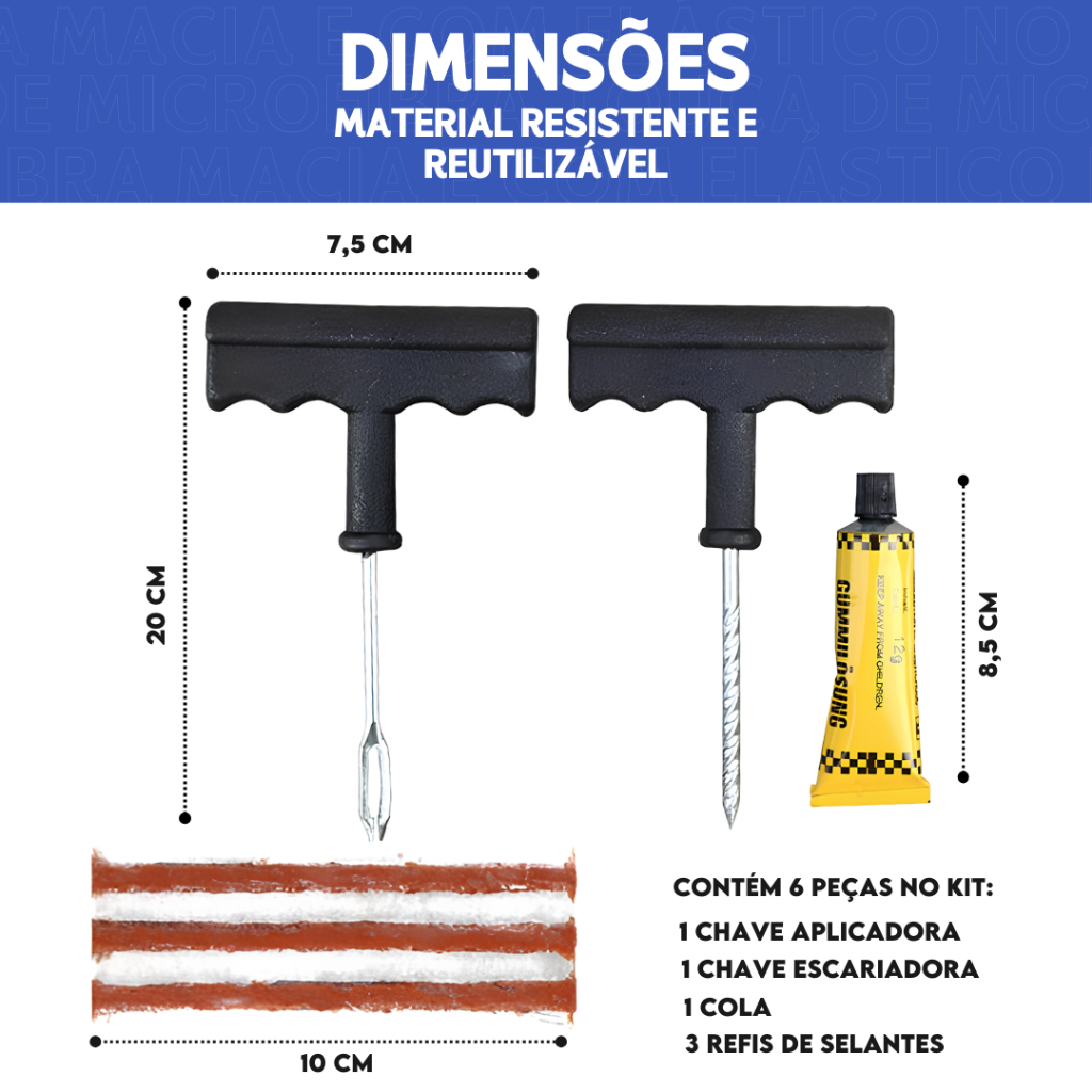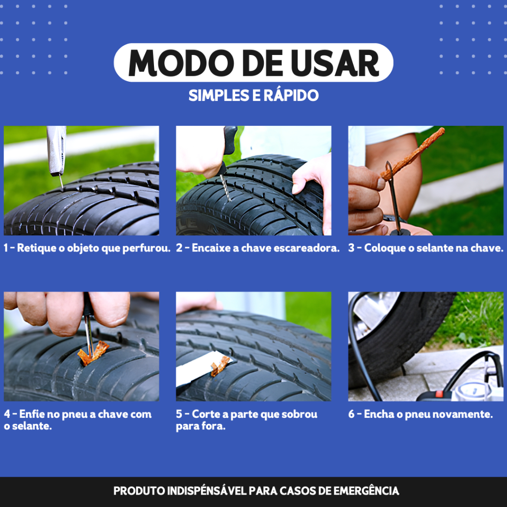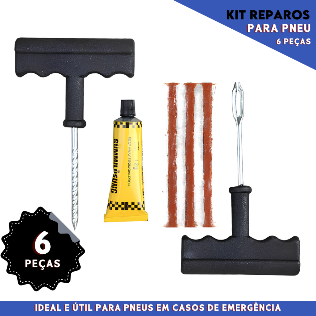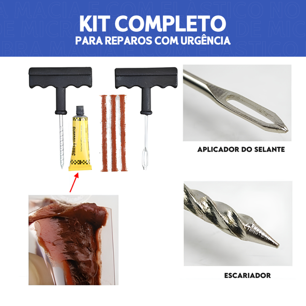 Kit Reparo Pneu Sem Câmara Kit de Emergência Para Pneus Prático e Fácil - Mazzal