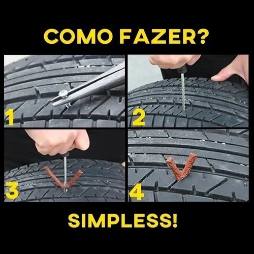 Kit Reparo Remendo Ferro Pneu Sem Câmara Profissional Carro Moto 5 a 30 Macarrao