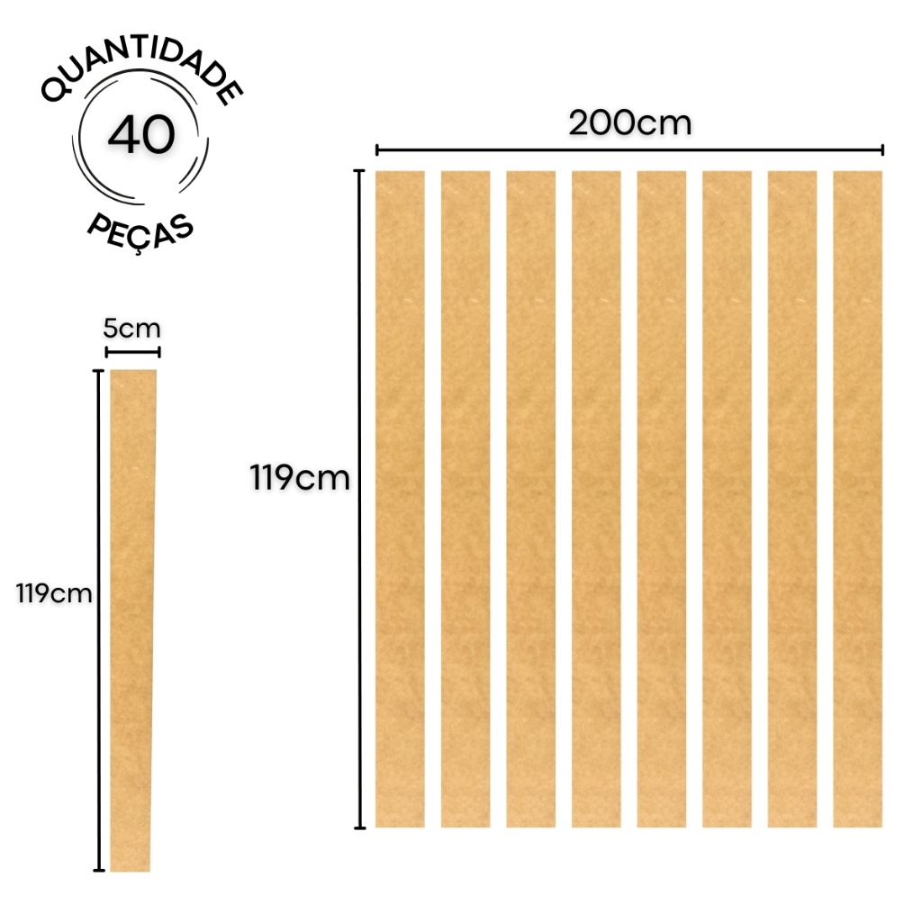 Kit Ripa Cru 40 Un Ripado Mdf Shiplap 119Cm Decorativo Retangular Painel Madeira 3Mm Quarto Bebe