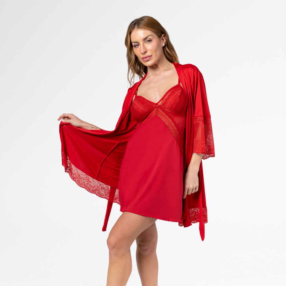Kit Robe curto Noiva Roupão Hobe Camisola Sensual Sexy Com Tule.