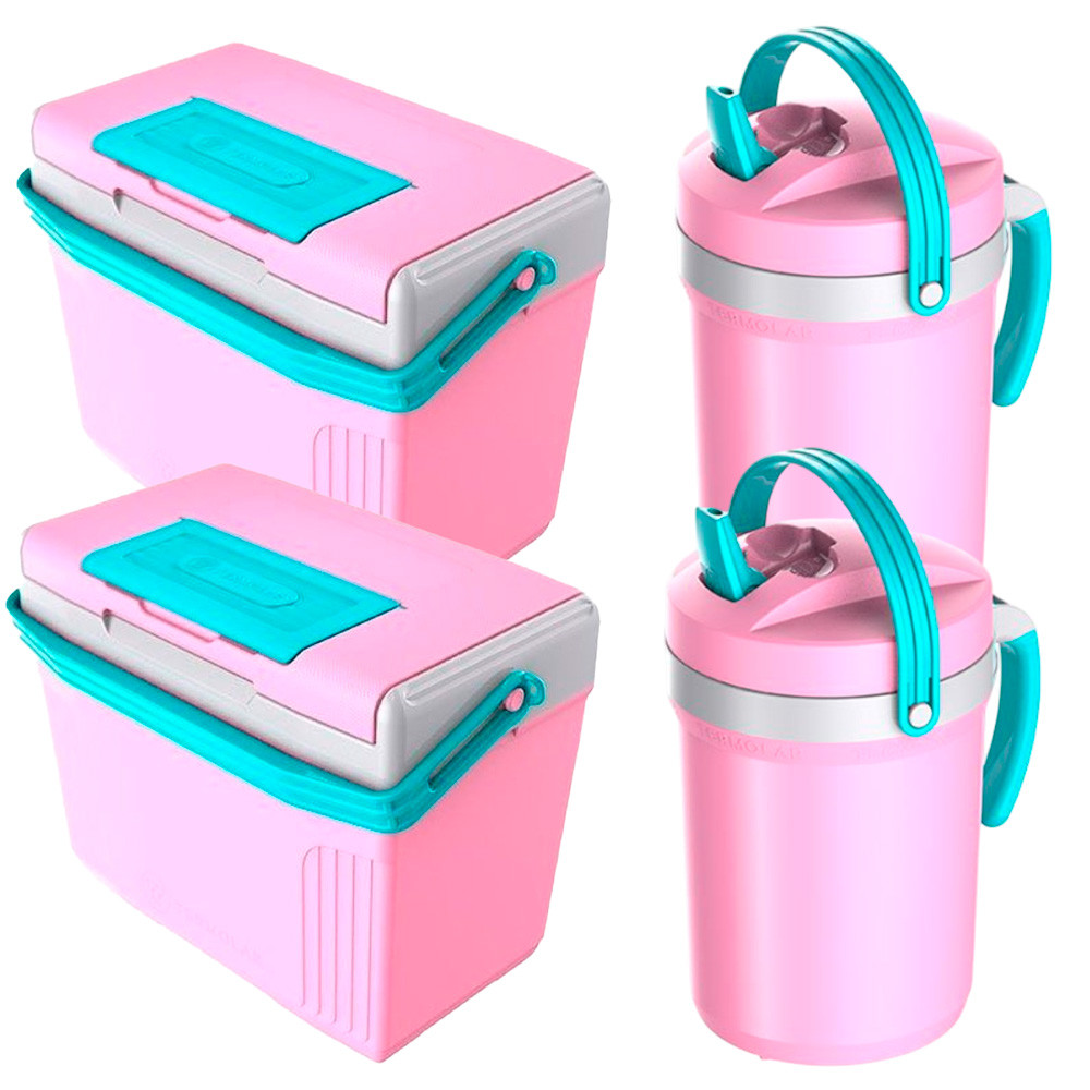 Kit Rosa Termolar 2 Caixas Cooler Térmico 8 Litros e 2 Jarras Térmicas 2,5 Litros Bebidas Geladas