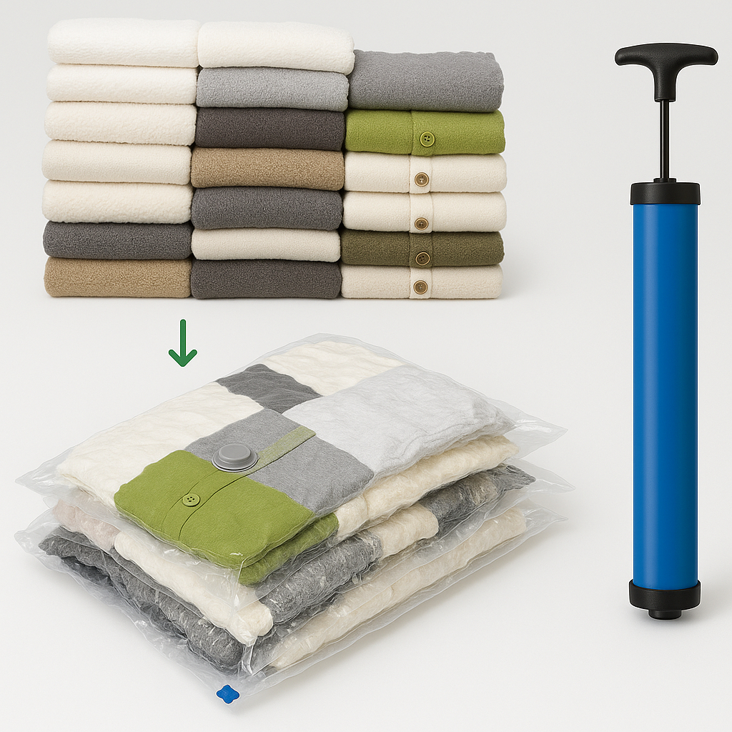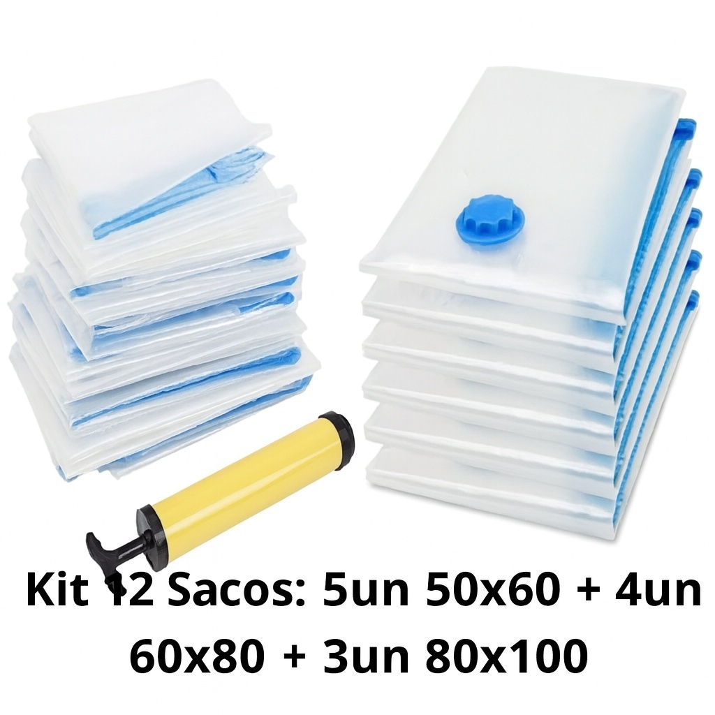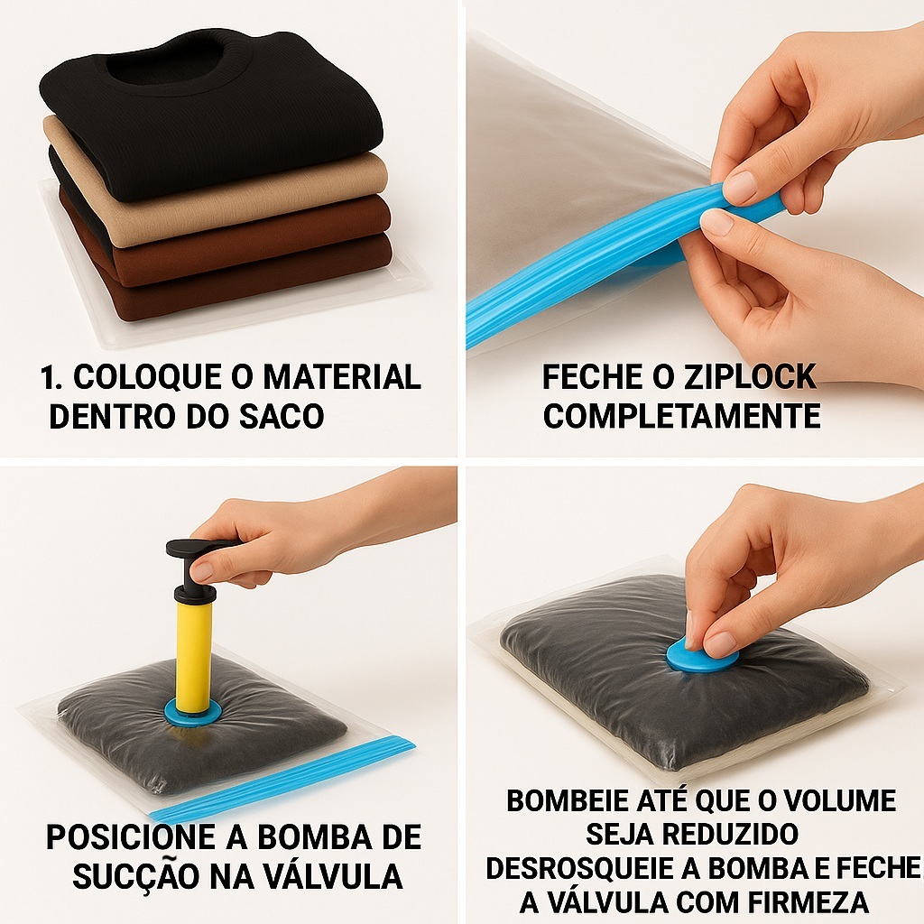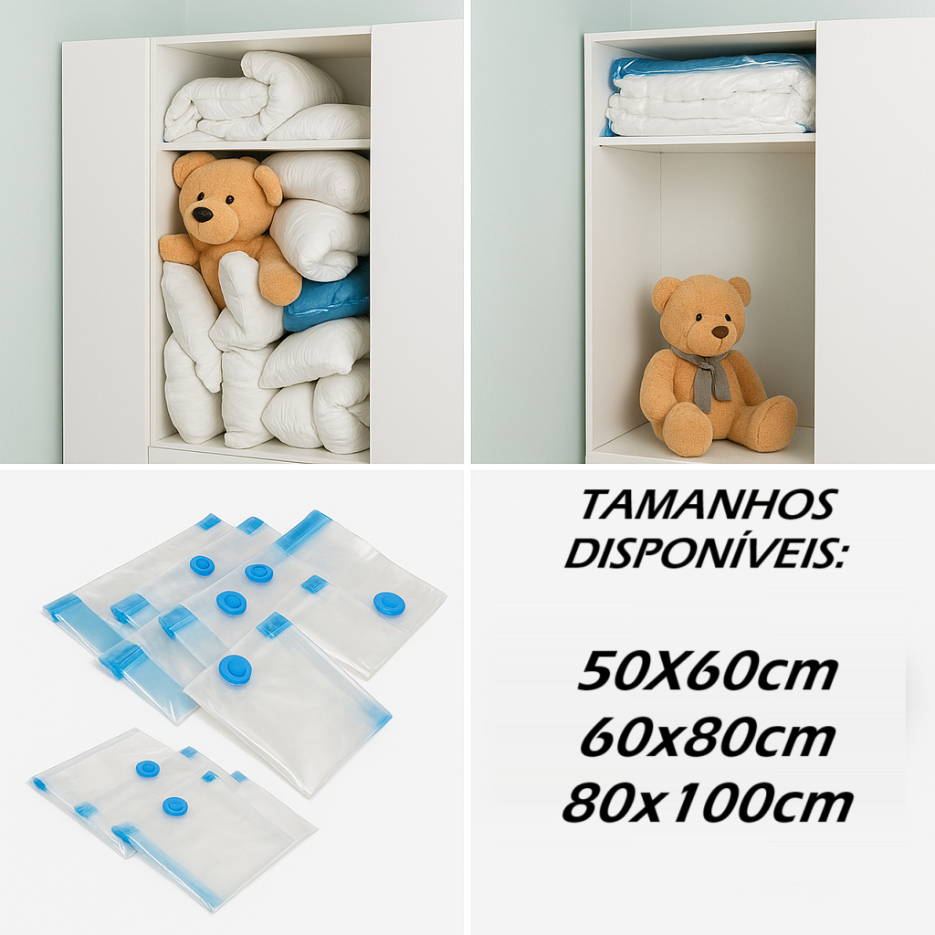 Kit Saco a Vácuo Com Bomba Viagem Mala Organizador Para Roupa Guarda Roupa Edredom Reutilizável