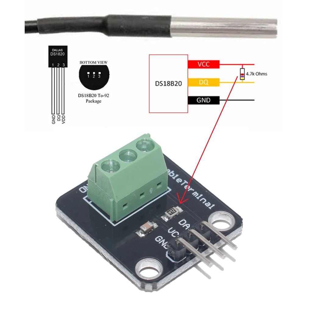 Kit Sensor De Temperatura Ds18b20 Sonda A Prova Agua Arduino