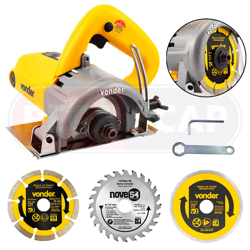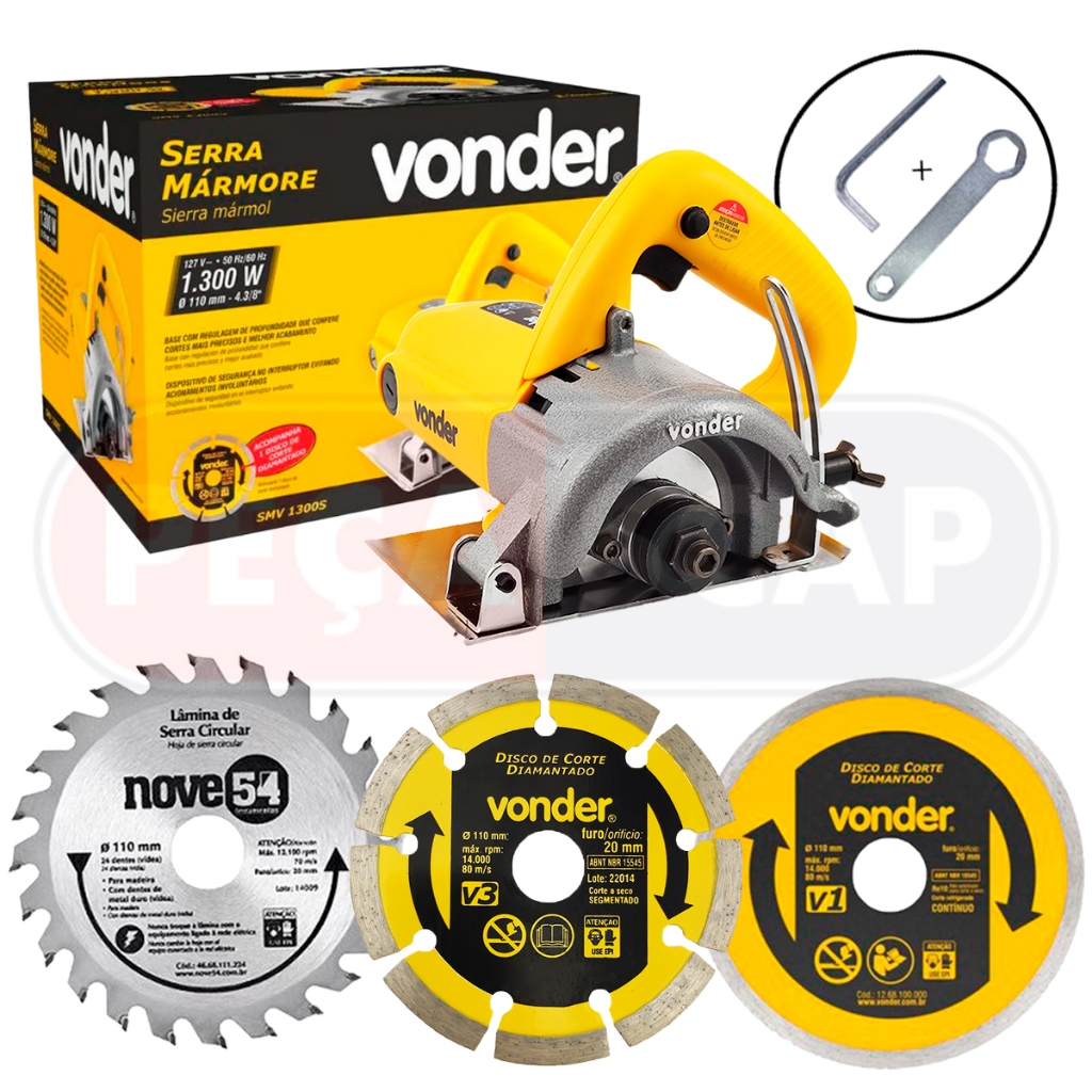 Kit Serra Mármore Vonder Smv1300s Tipo Makita + 3 Discos de Corte