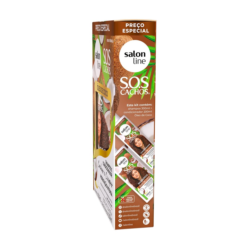 Kit Shampoo 300ml + Condicionador 200ml SOS Cachos Óleo de Coco
