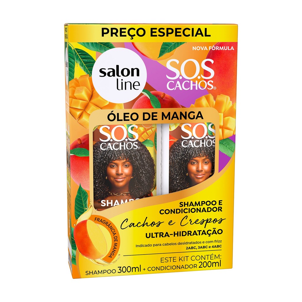 Kit Shampoo 300ml + Condicionador 200ml SOS Cachos Óleo de Manga