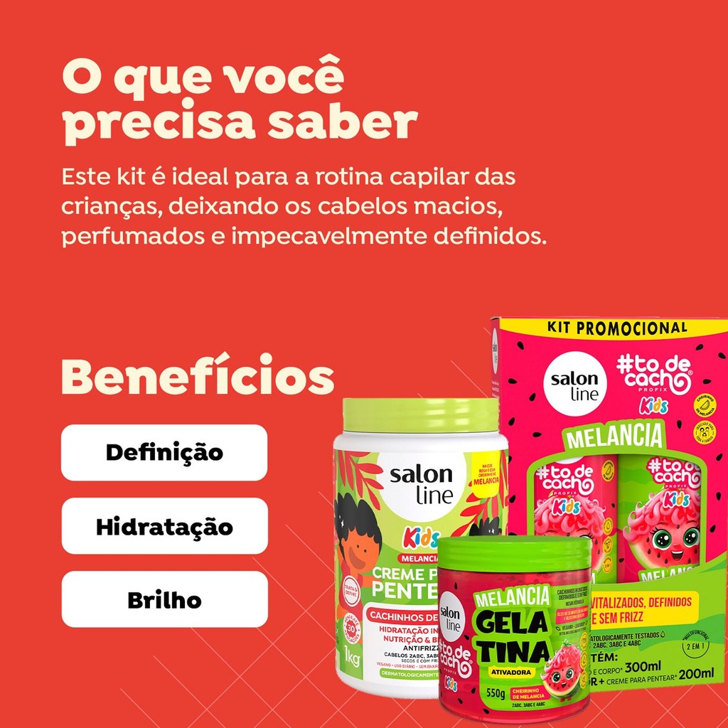 Kit Shampoo + Condicionador + Creme de Pentear 1KG e Gelatina 550g Melancia