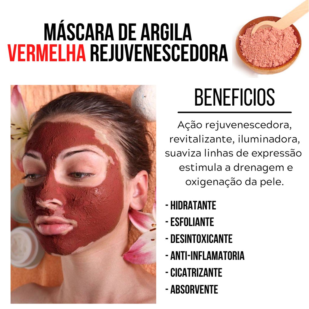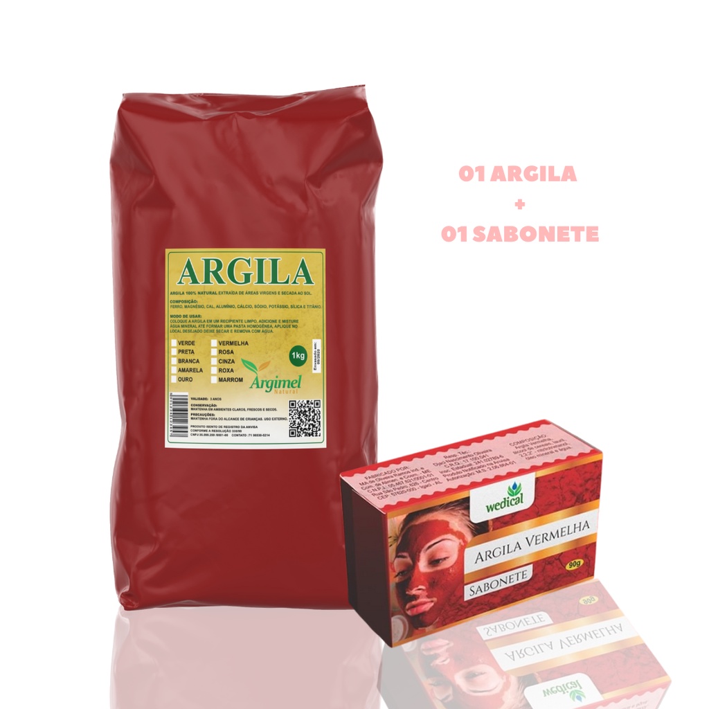 Kit Skin Care Rejuvenescedore Argila Vermelha 1kg + Sabonete de Argila Wedical 90g Limpeza Facial