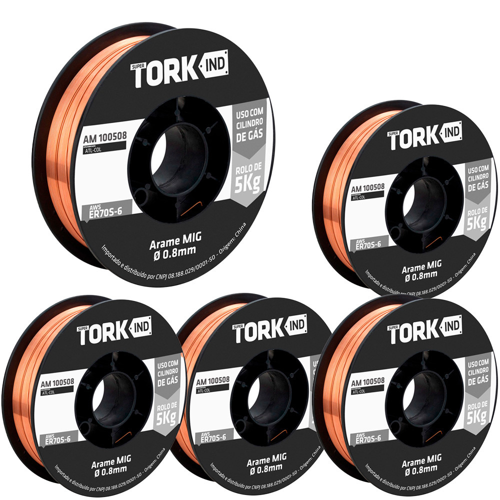Kit Solda 5 Arame Sólido Cobreado para Solda 0,8mm 5kg Cada Super Tork