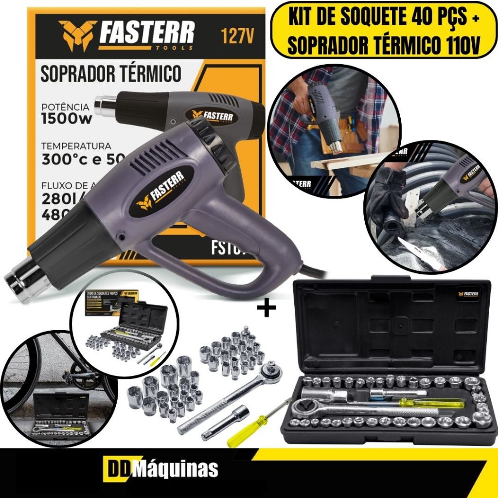 Kit Soprador Termico 1500W 110V FST078BR + Jogo De Soquete 40 Peças FST003 - Fasterr