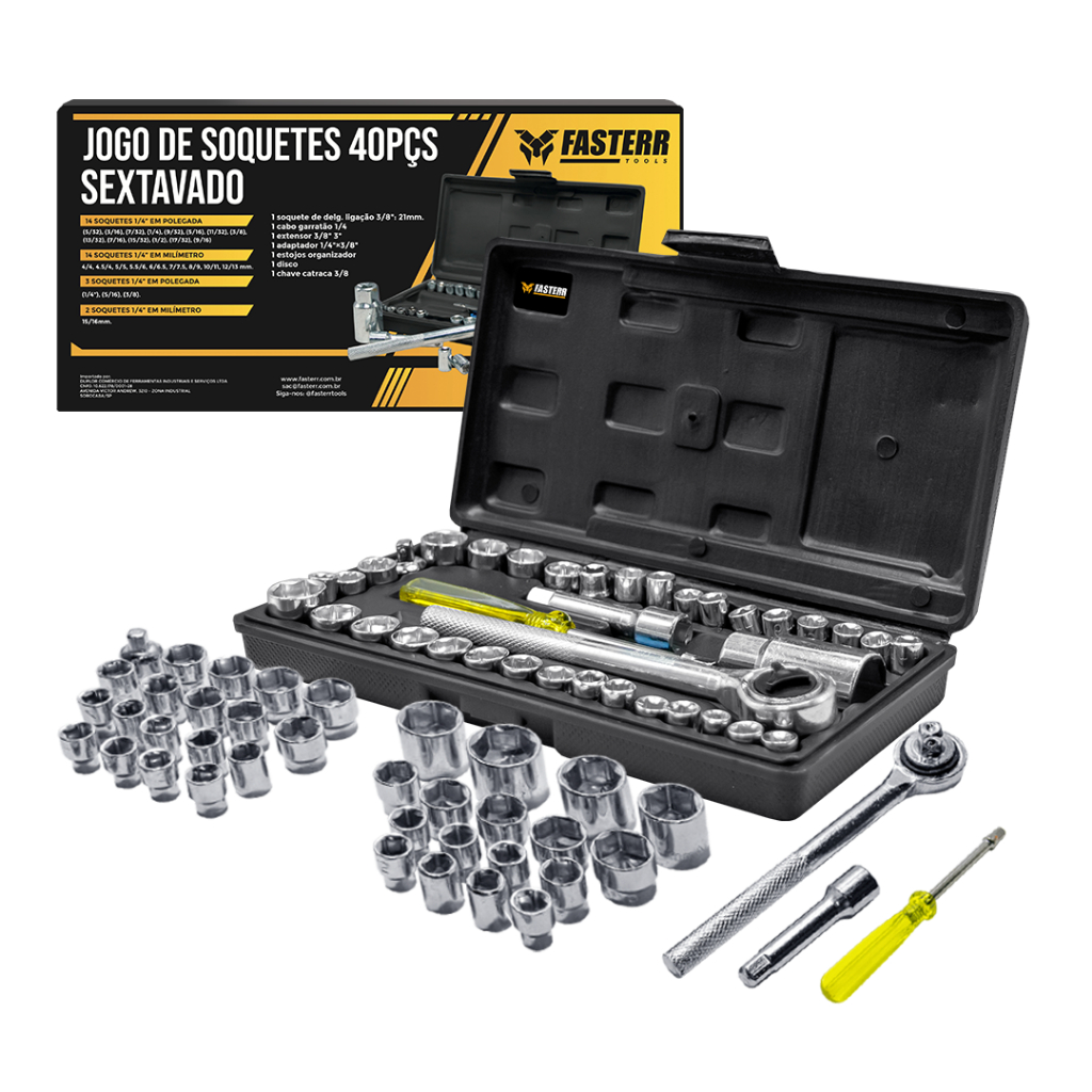 Kit Soprador Termico 2000W 220V FST078B2 + Jogo De Soquete 40 Peças FST003 - Fasterr