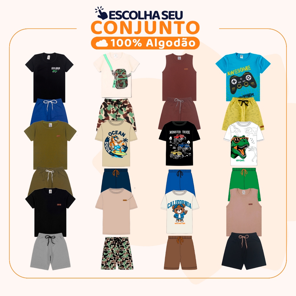 Kit Sortido 12 Peças de Roupas Infantil Menino 6 Camisetas + 6 Bermudas - Kit com 6 Conjuntos de Roupa Verão Menino Bebê
