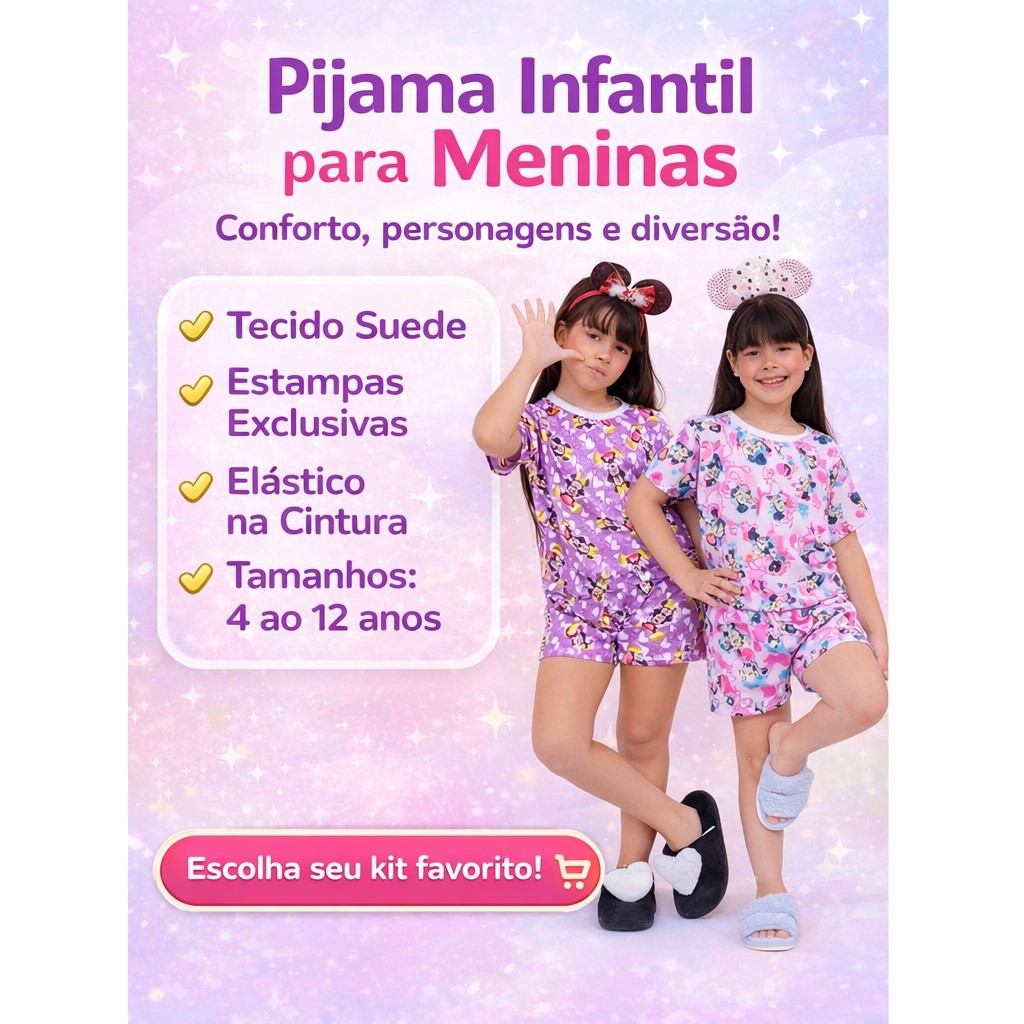 Kit Sortido 6 peças pijama infantil menina pijama feminino estampado blusa e Short Entrega Rápida