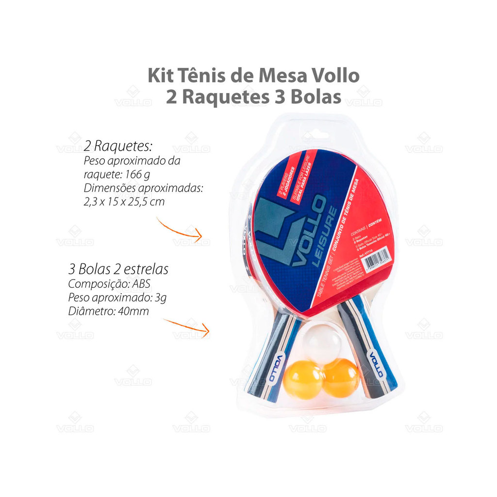 Kit Tênis de Mesa Vollo 2 Raquetes + 3 Bolas Profissional Original