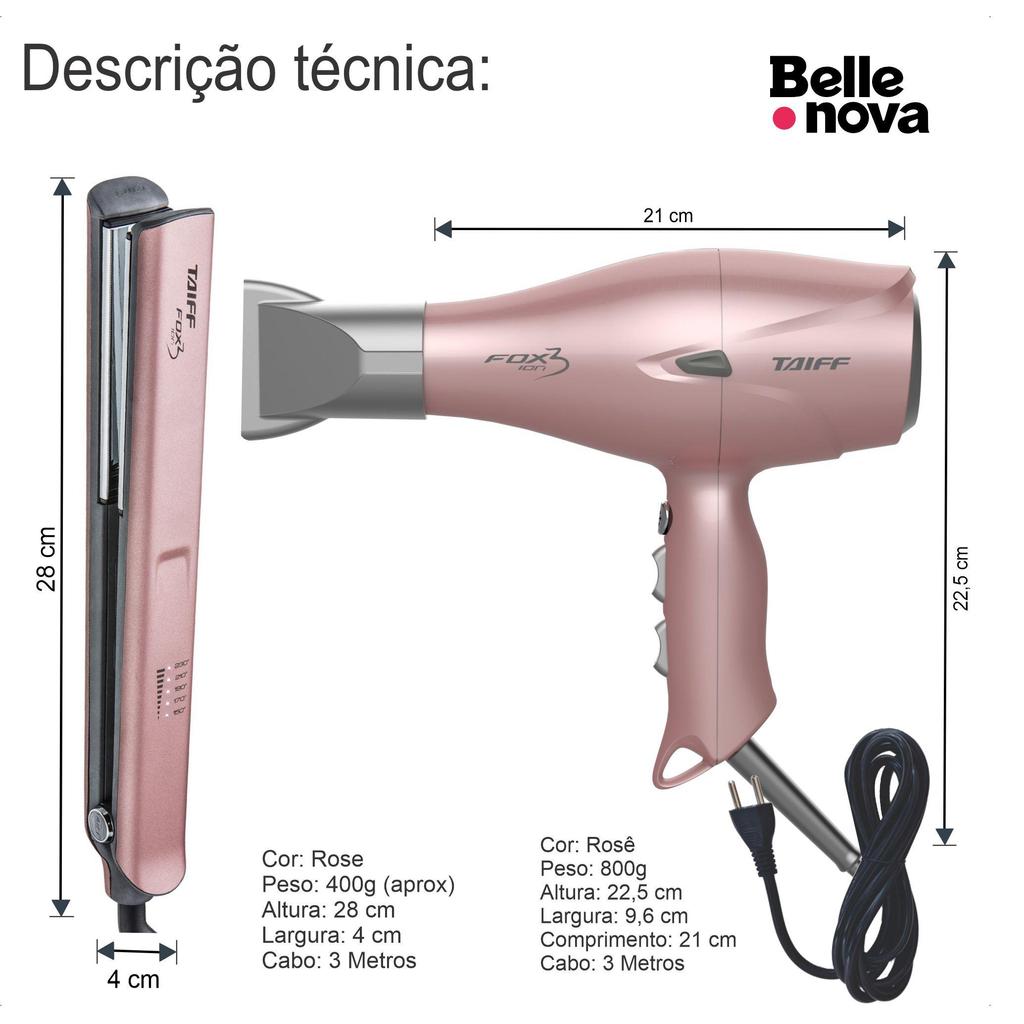Kit Taiff Secador Fox 3 Rose 2200w 110v + Chapinha 230c°