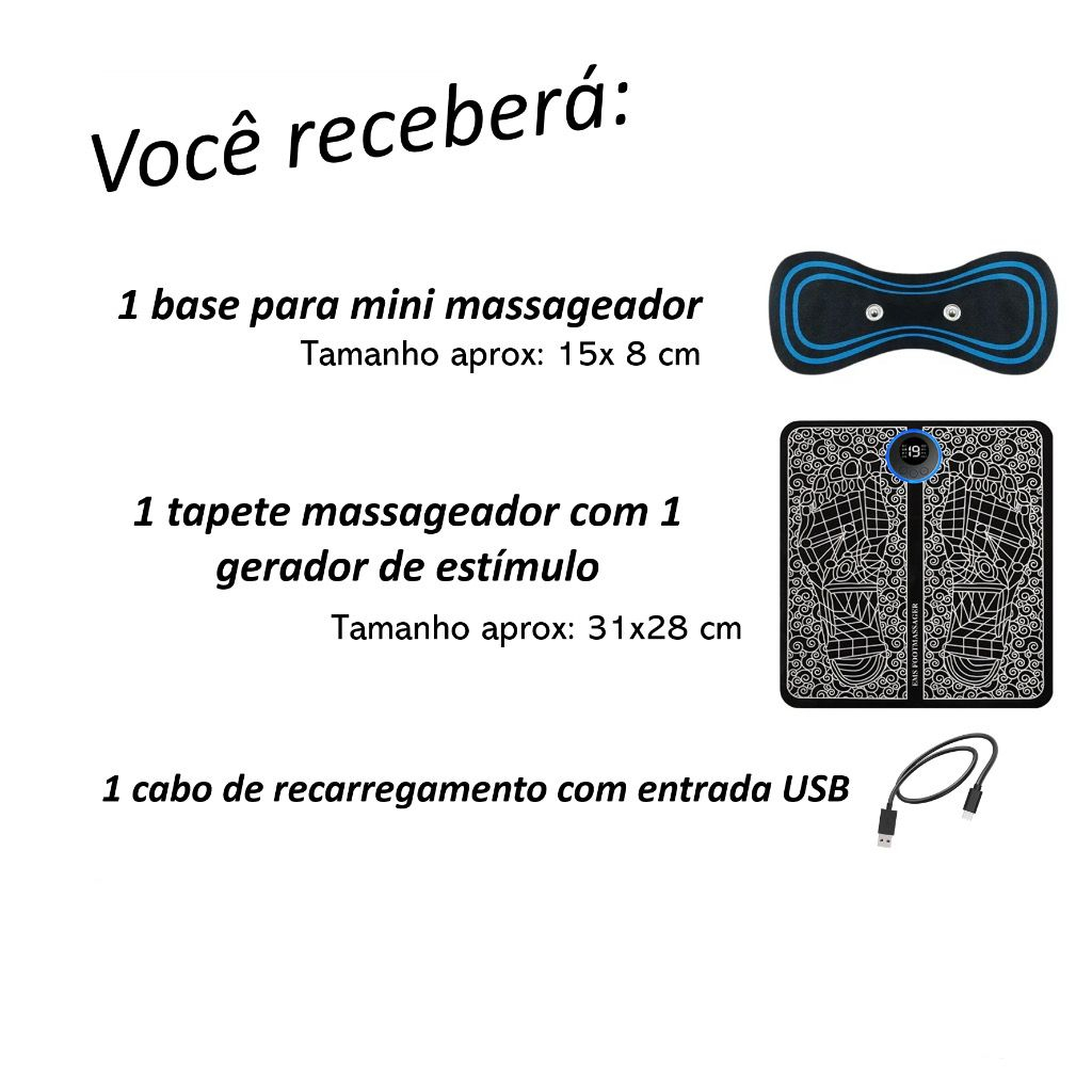 Kit Tapete E Mini Massageador Elétrico Dor Pés E Musculares EMS
