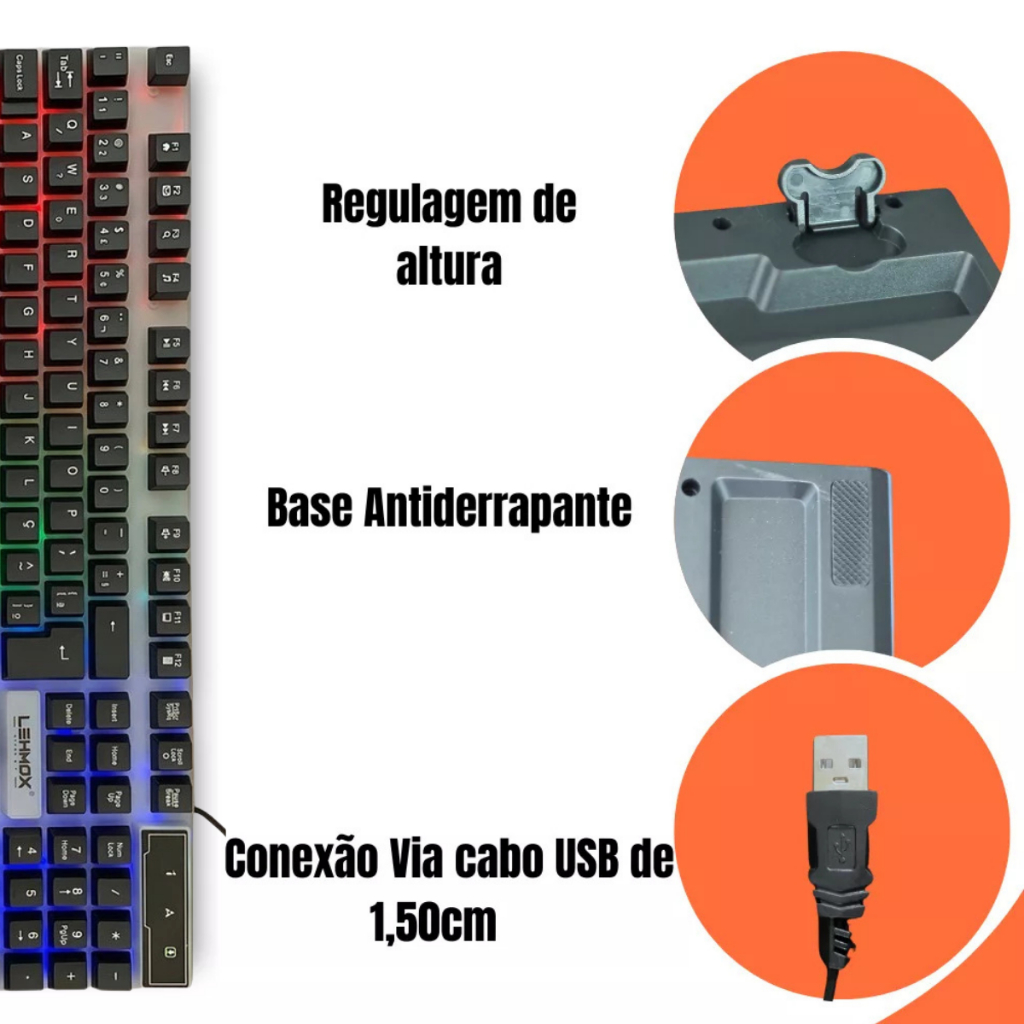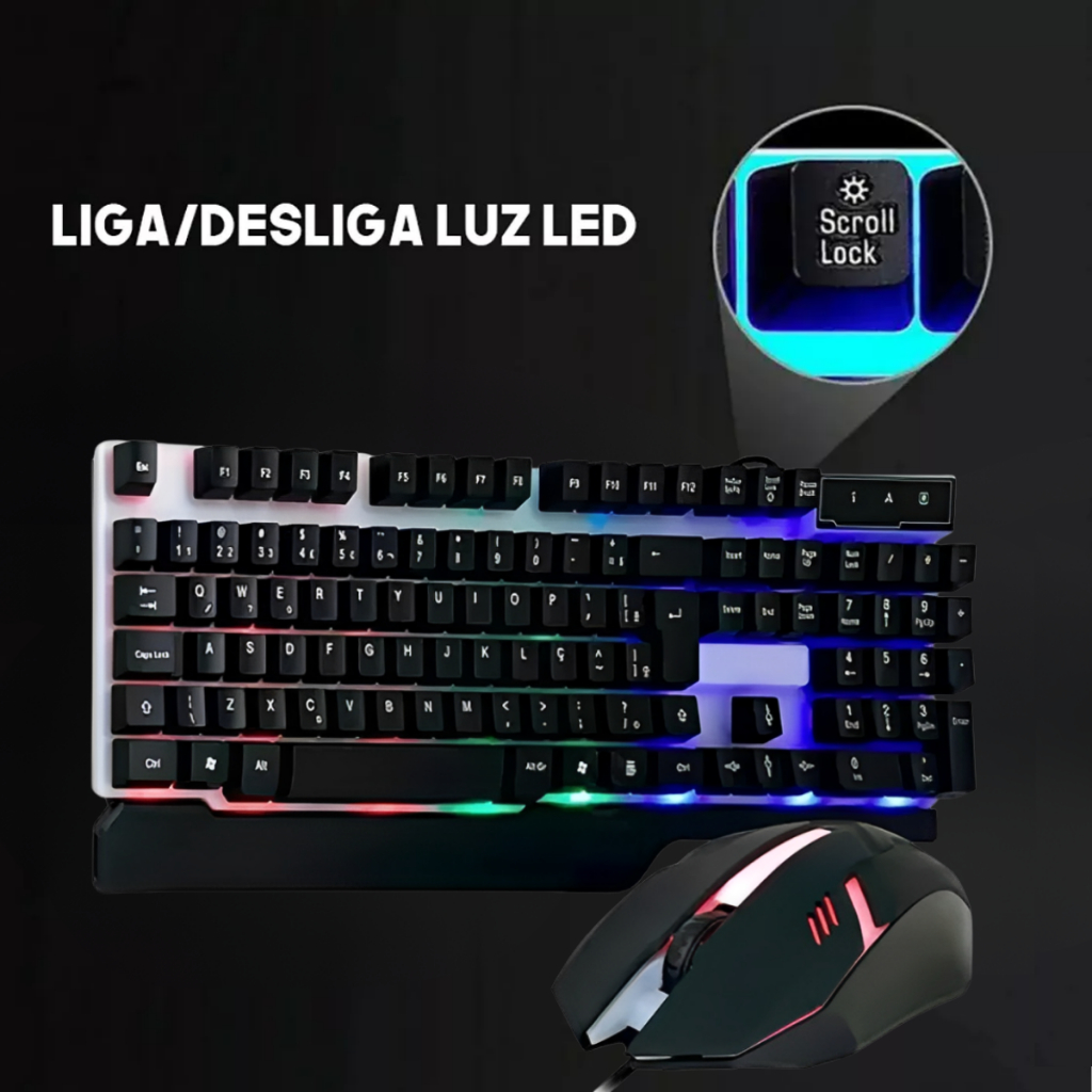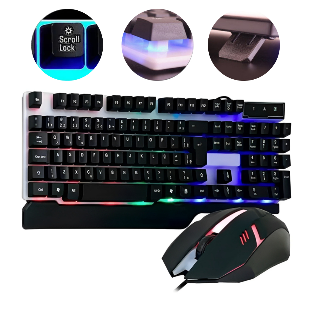 Kit Teclado E Mouse Gamer Semi-mecânico Led Rgb Lançamento Para Computador Notebook Video Game
