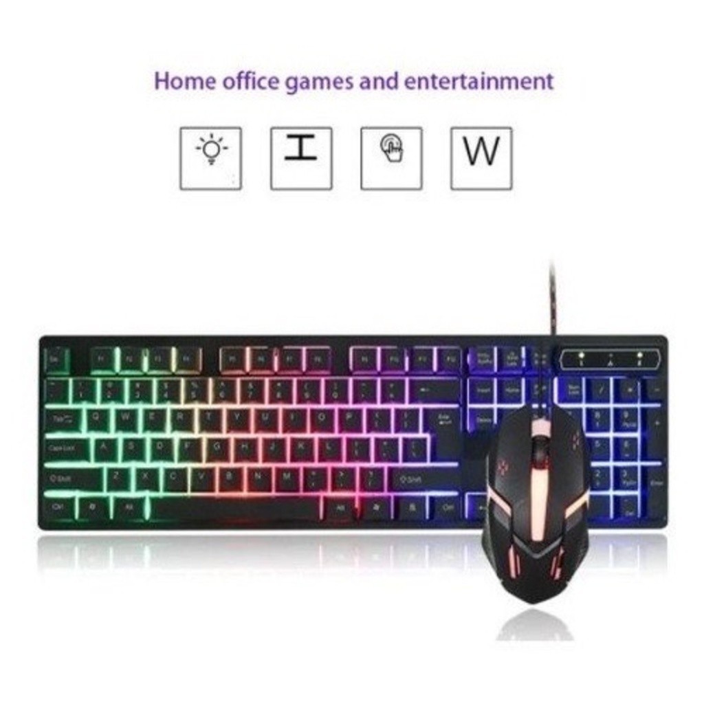 Kit Teclado Mouse Semi Mecânico RGB LED Gamer Jogo M400/M300 Com Fio