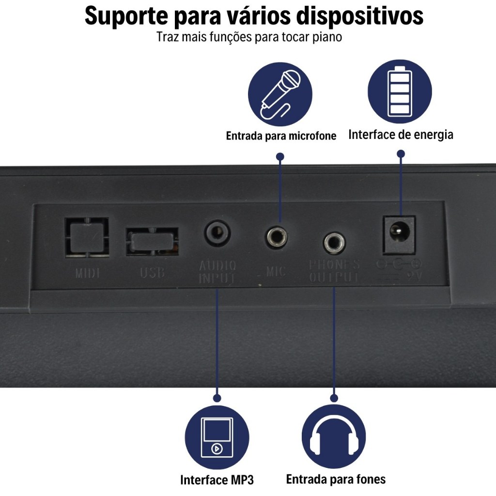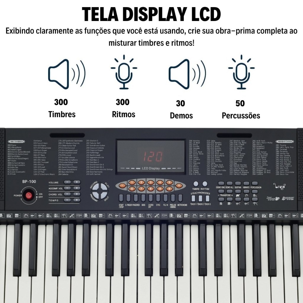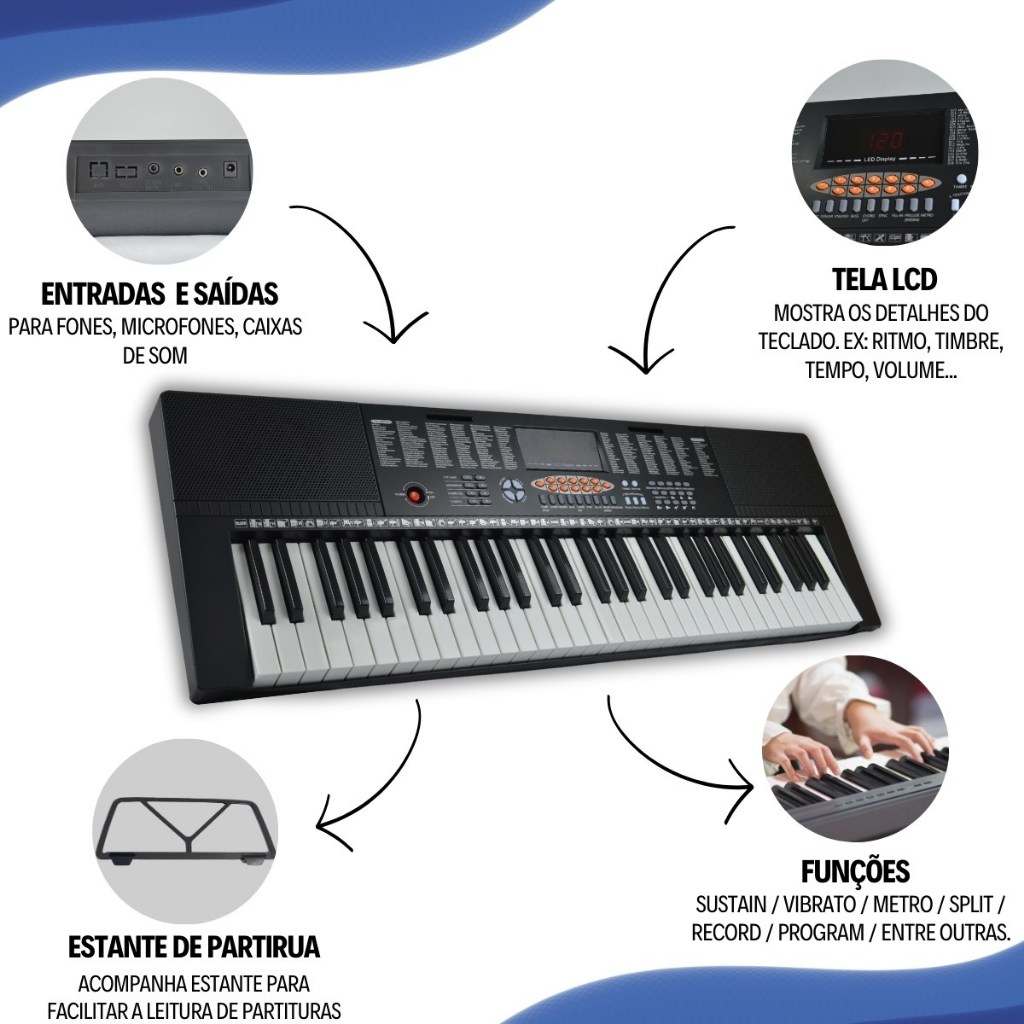 Kit Teclado Musical Estudante 5/8 Bravo Bp100 61 Teclas + Suporte