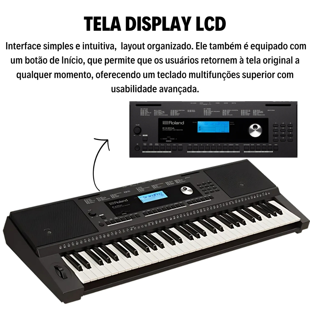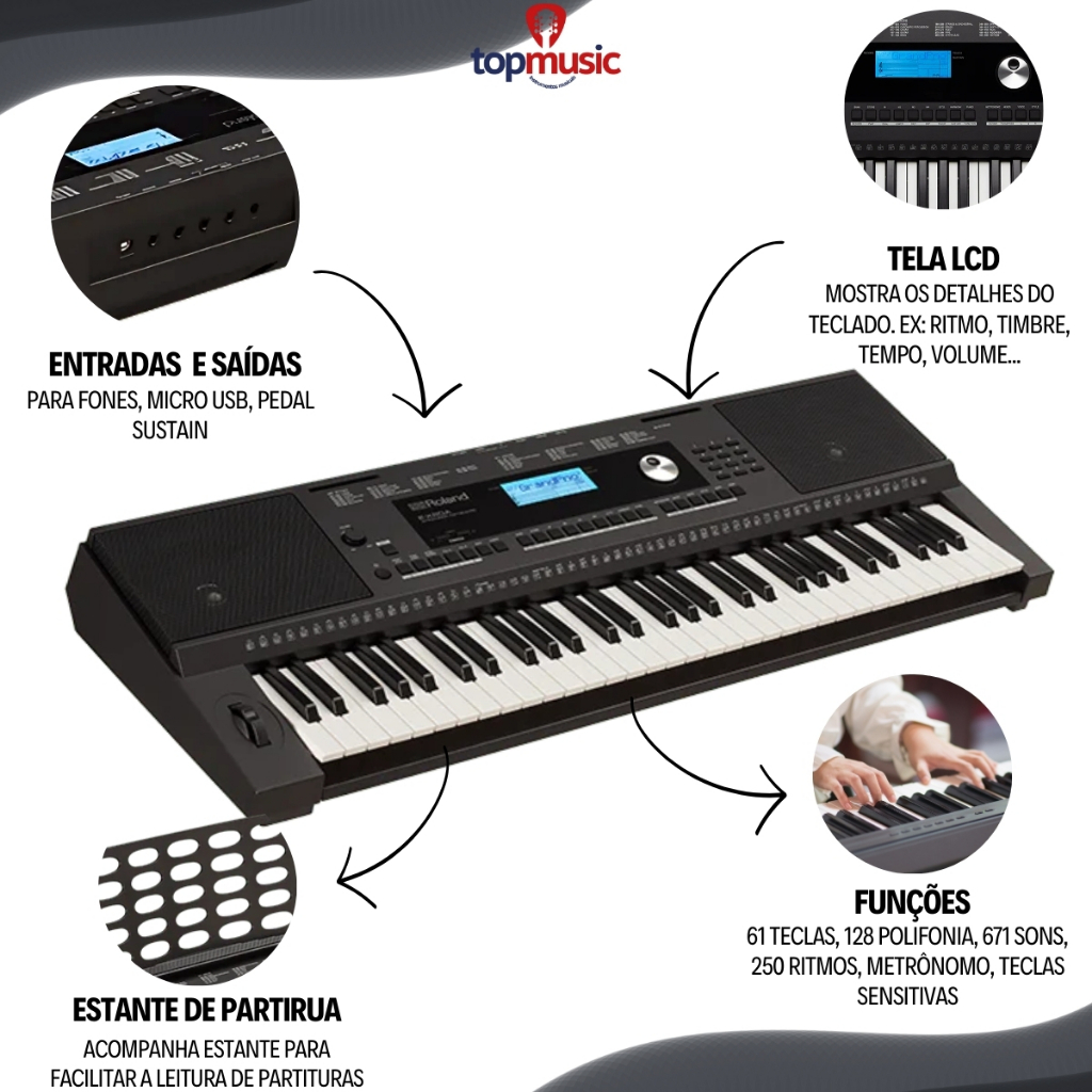 Kit Teclado Musical Roland Ex20a 61 Teclas + Suporte Capa Pedal