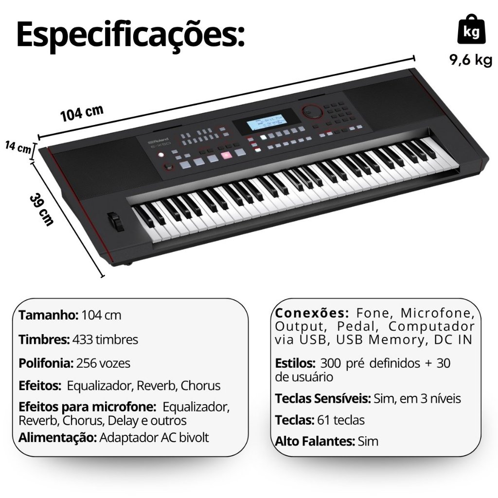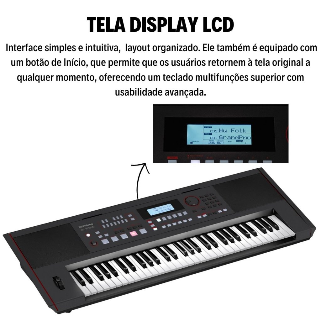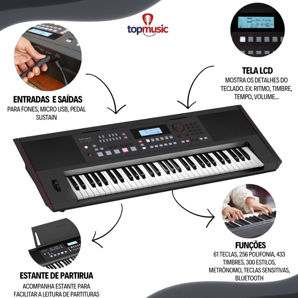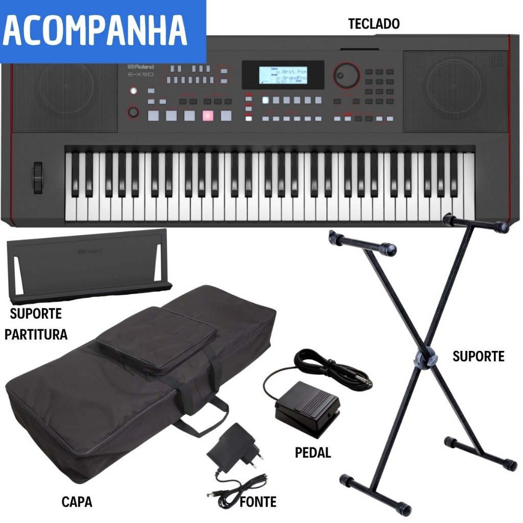 Kit Teclado Musical Roland Ex50a 61 Teclas Digital + Suporte Capa Pedal