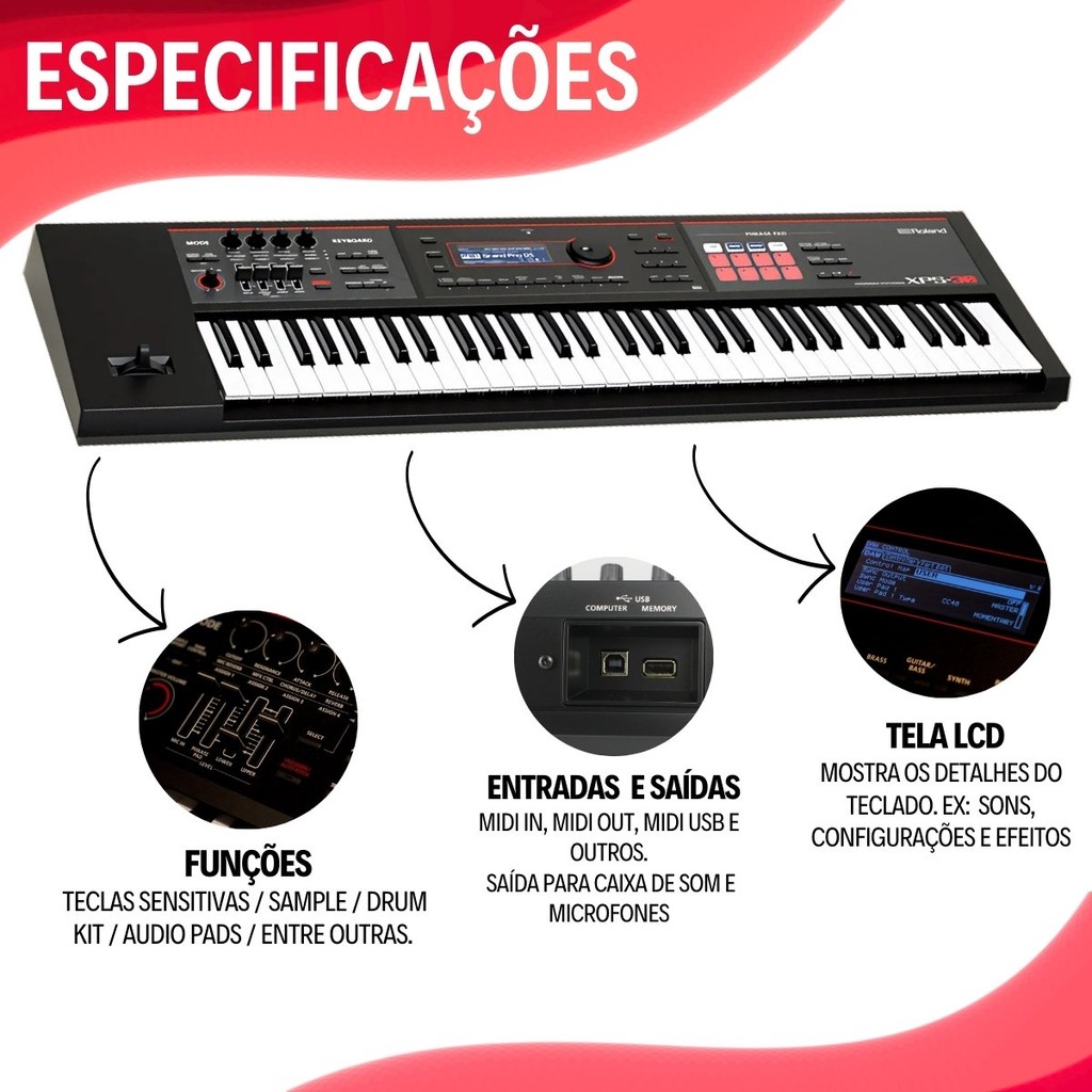 Kit Teclado Sintetizador Roland 61 Teclas Xps30 + Pedal